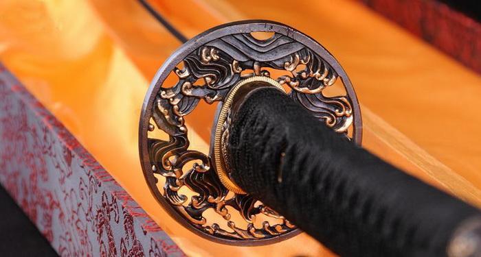 Authentic Japanese Samurai Sword, Clay Tempered Katana Waves Tsuba