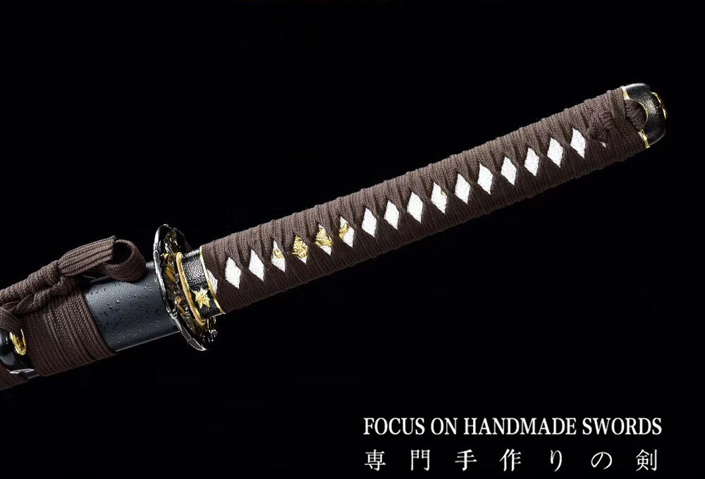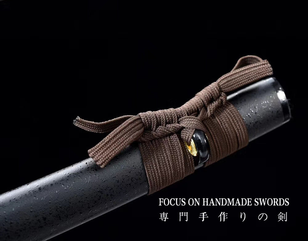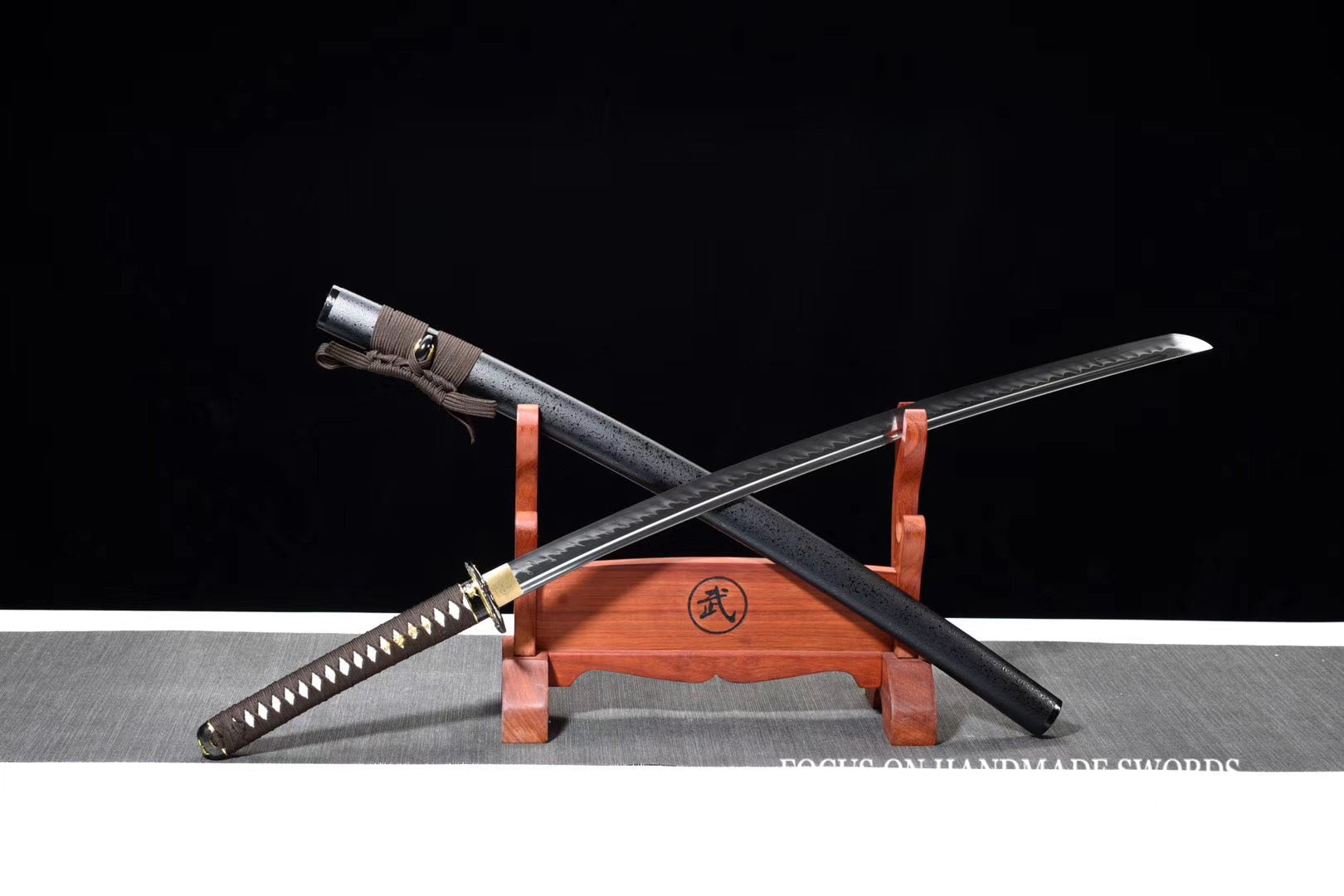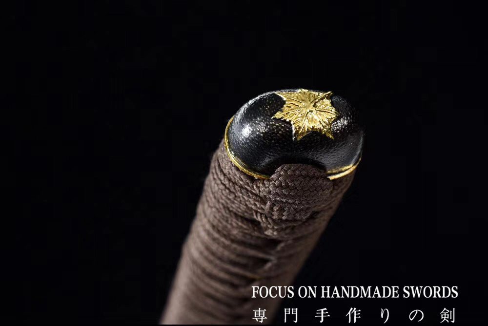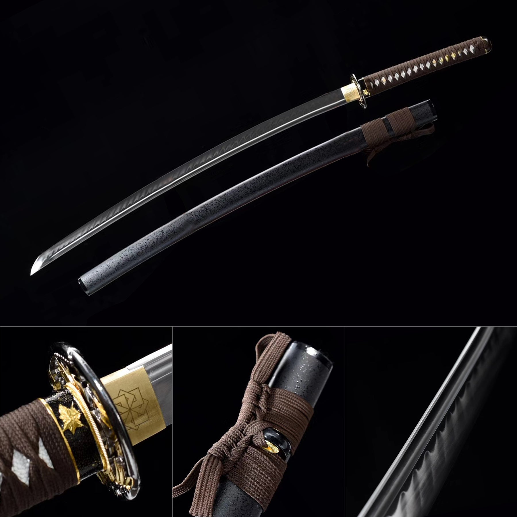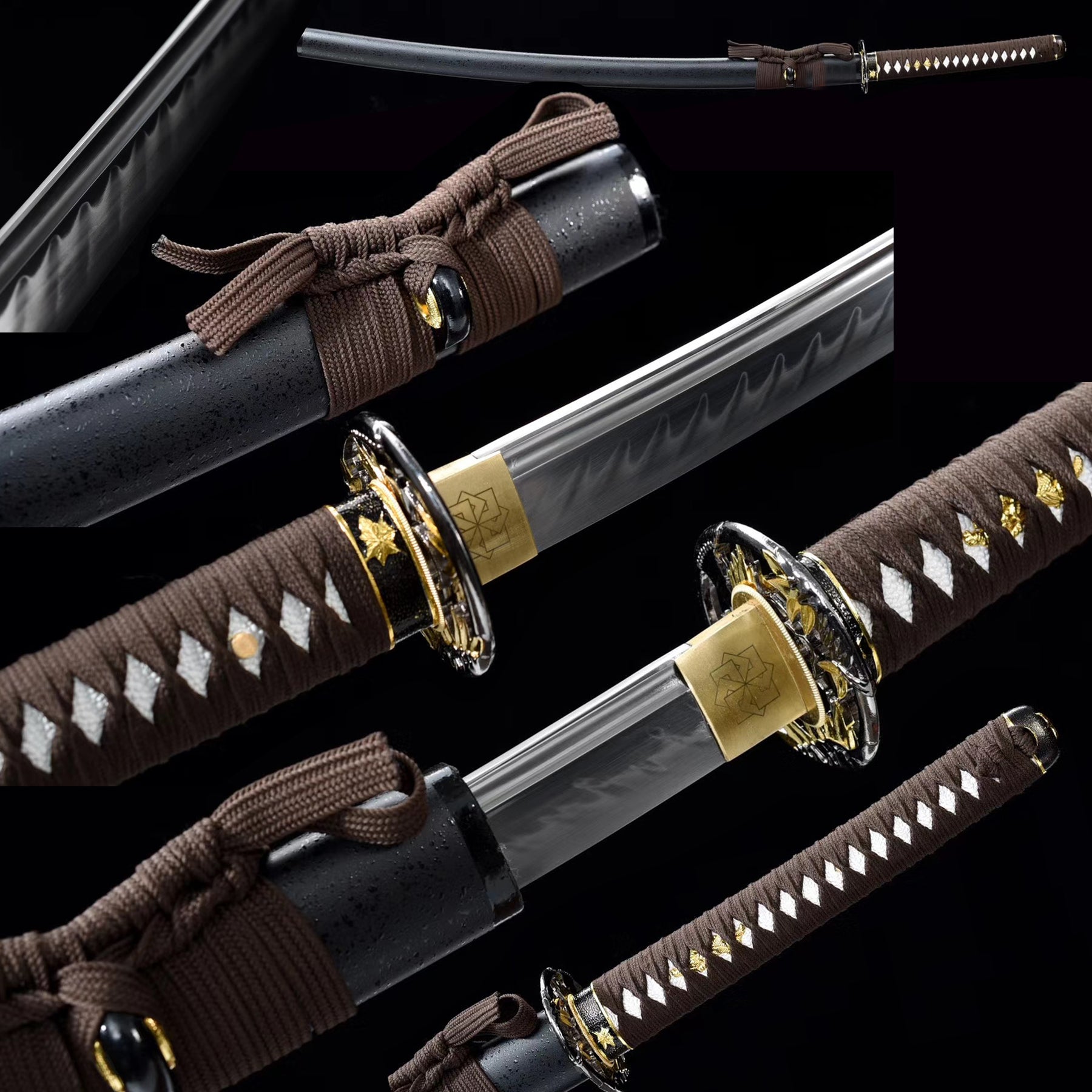 Hand Forged 1095 High Carbon Nail Pattern Clay Tempered Japanese Katana Samurai Sword Brown