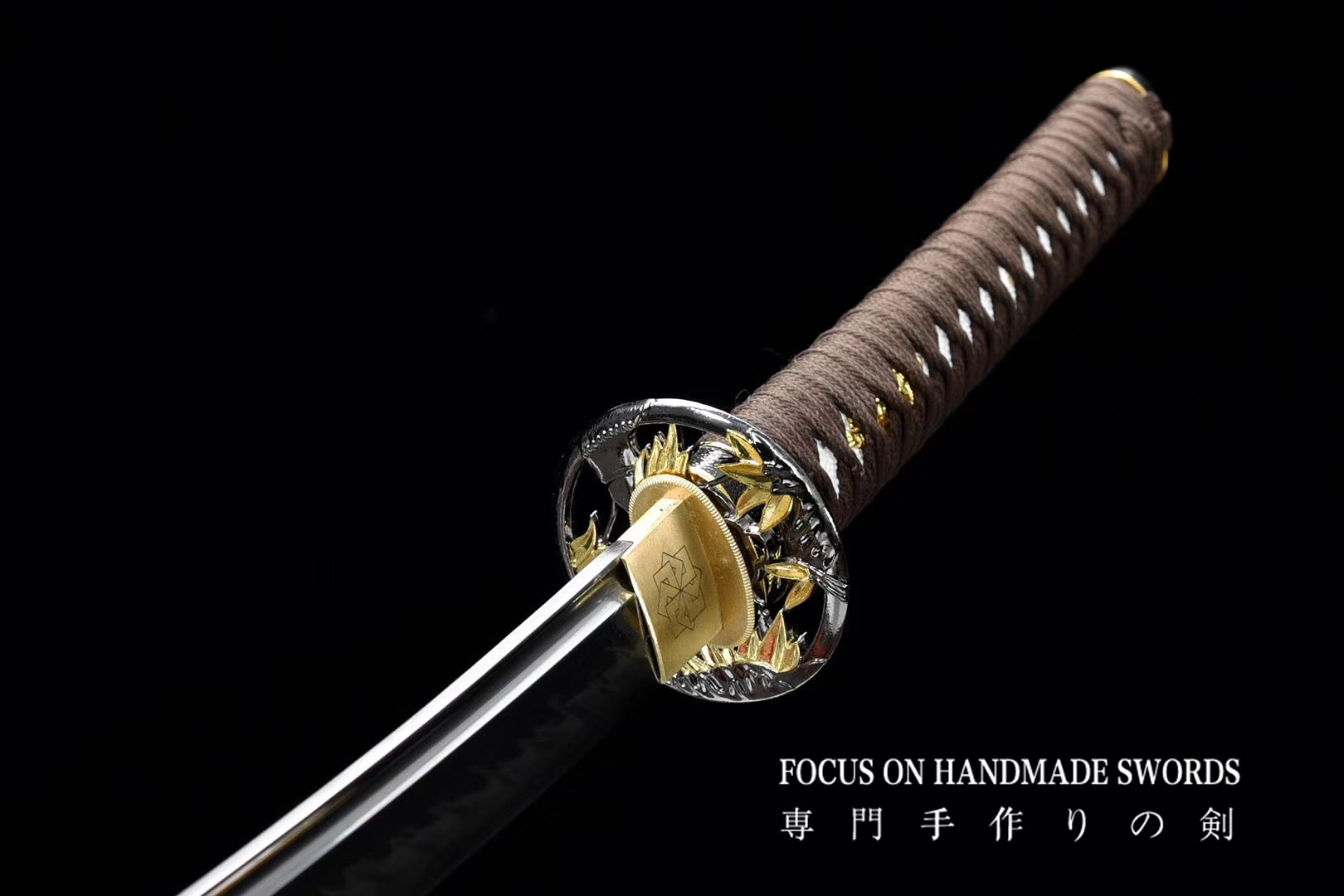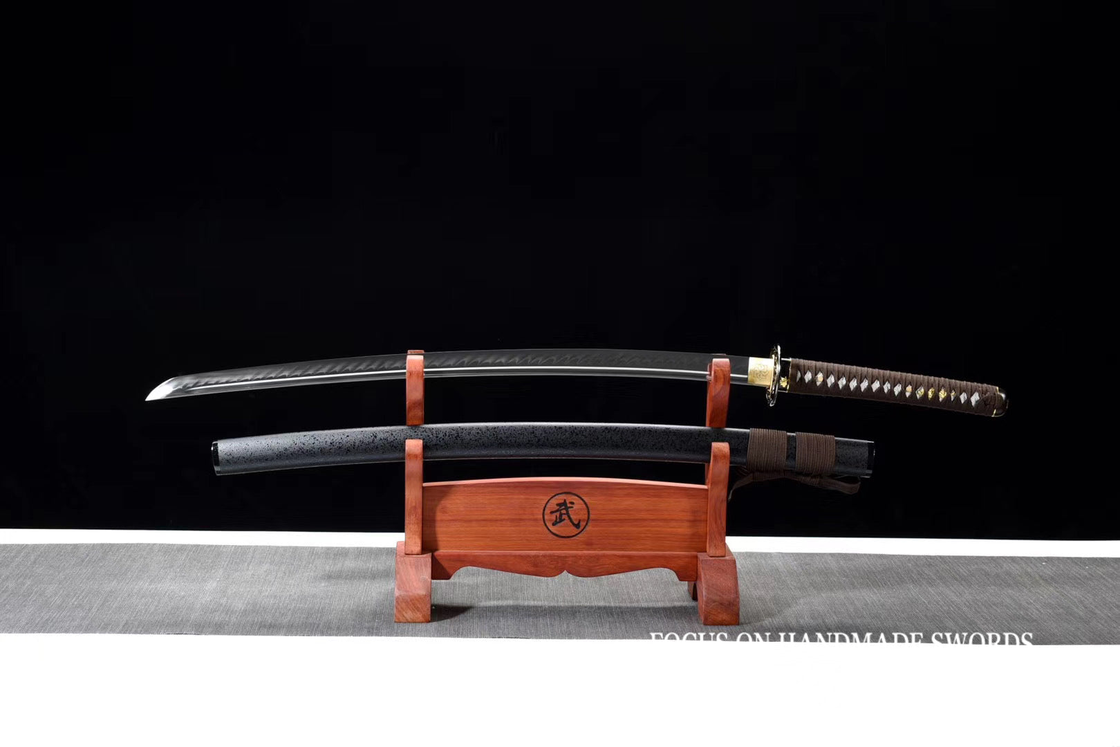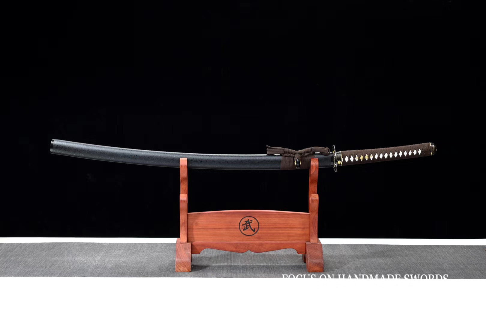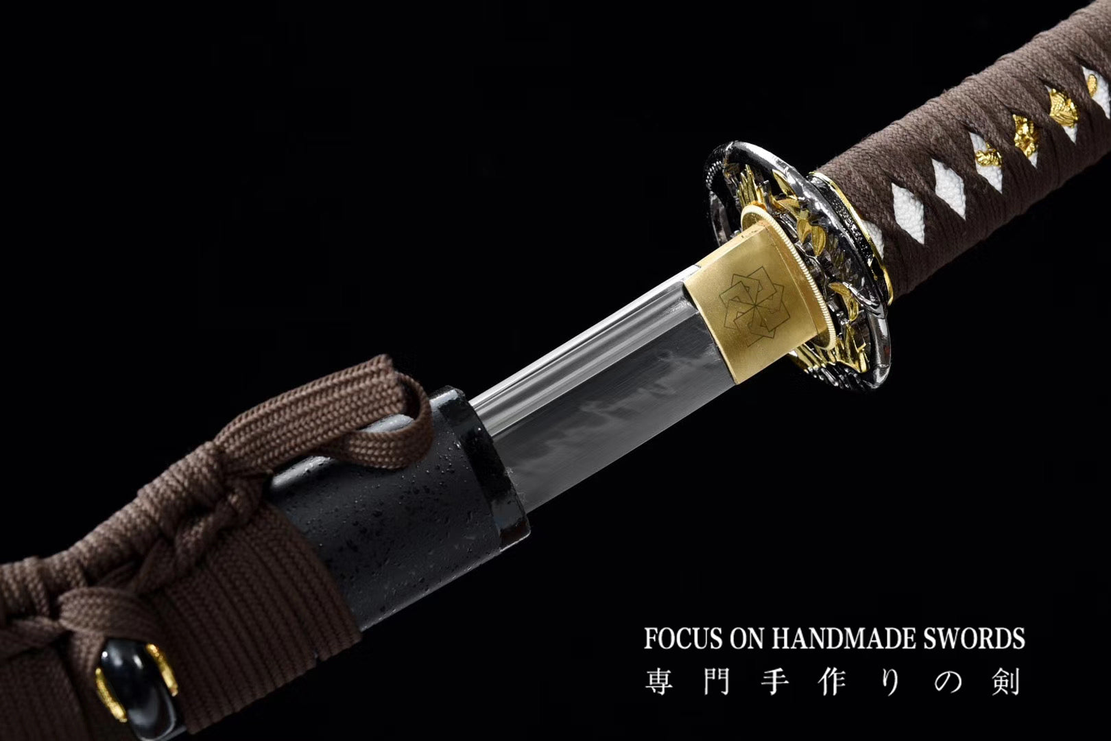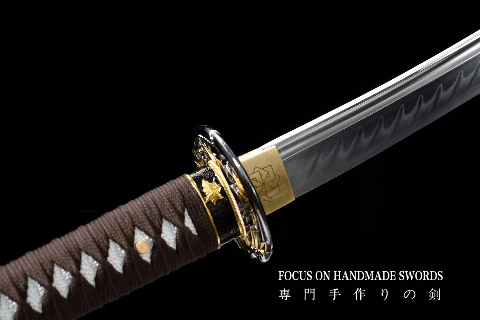 Hand Forged 1095 High Carbon Nail Pattern Clay Tempered Japanese Katana Samurai Sword Brown