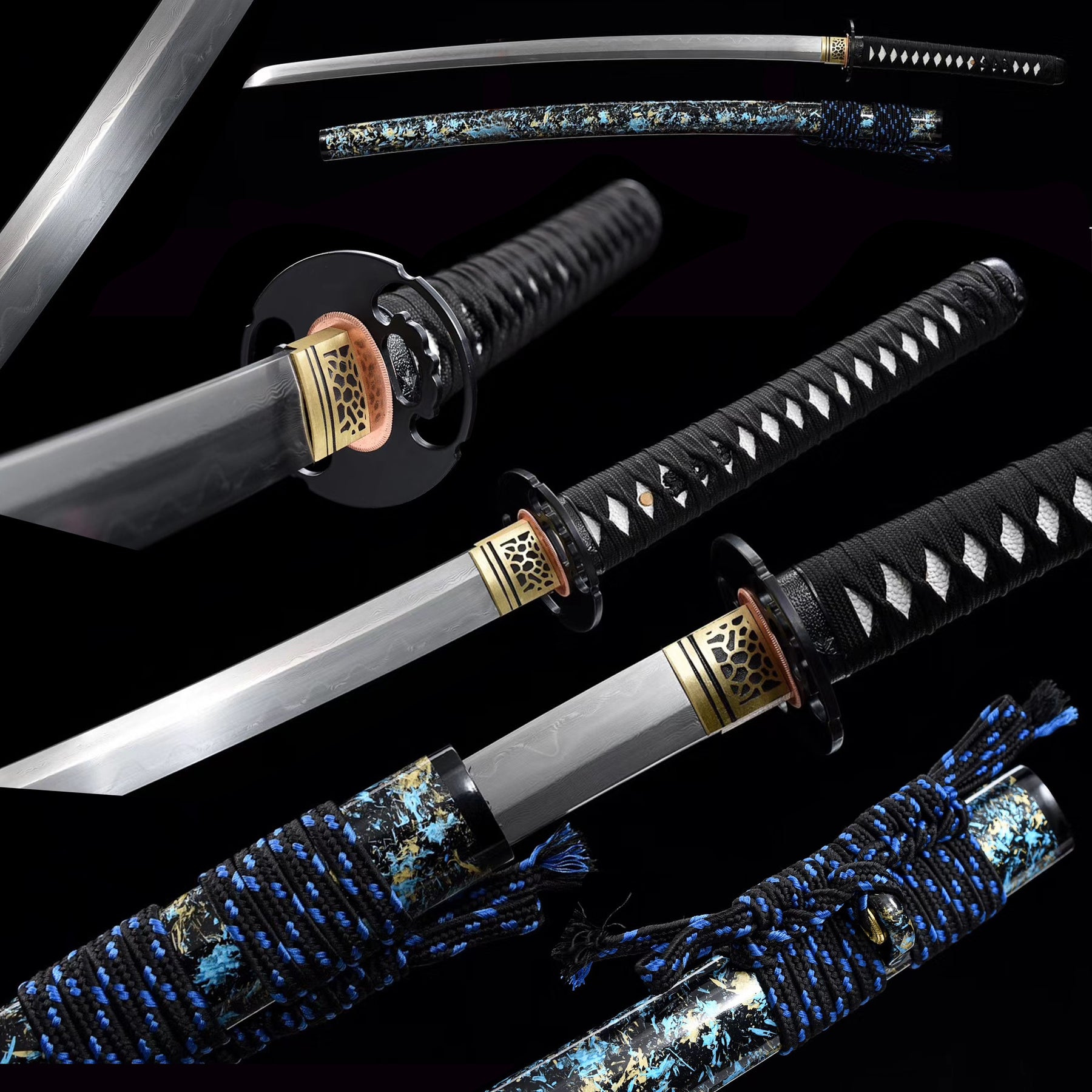 Hand Forged Folded Steel with Clay Tempered Samurai Swords Katana Full Tang Blade