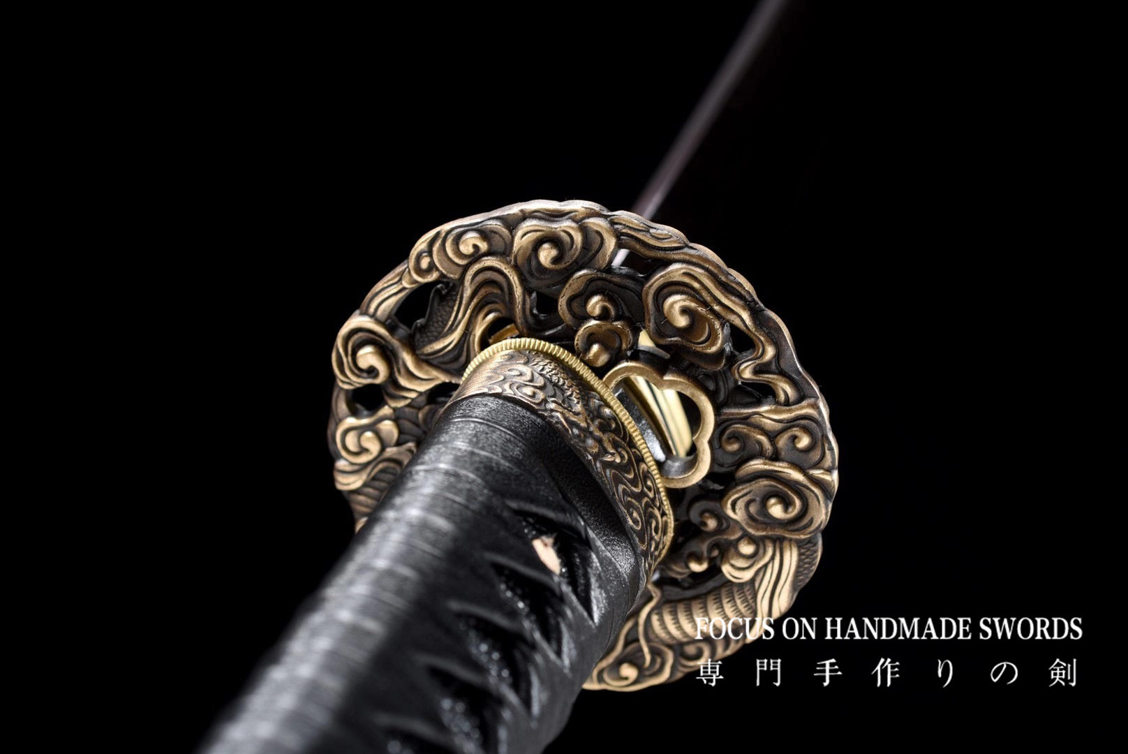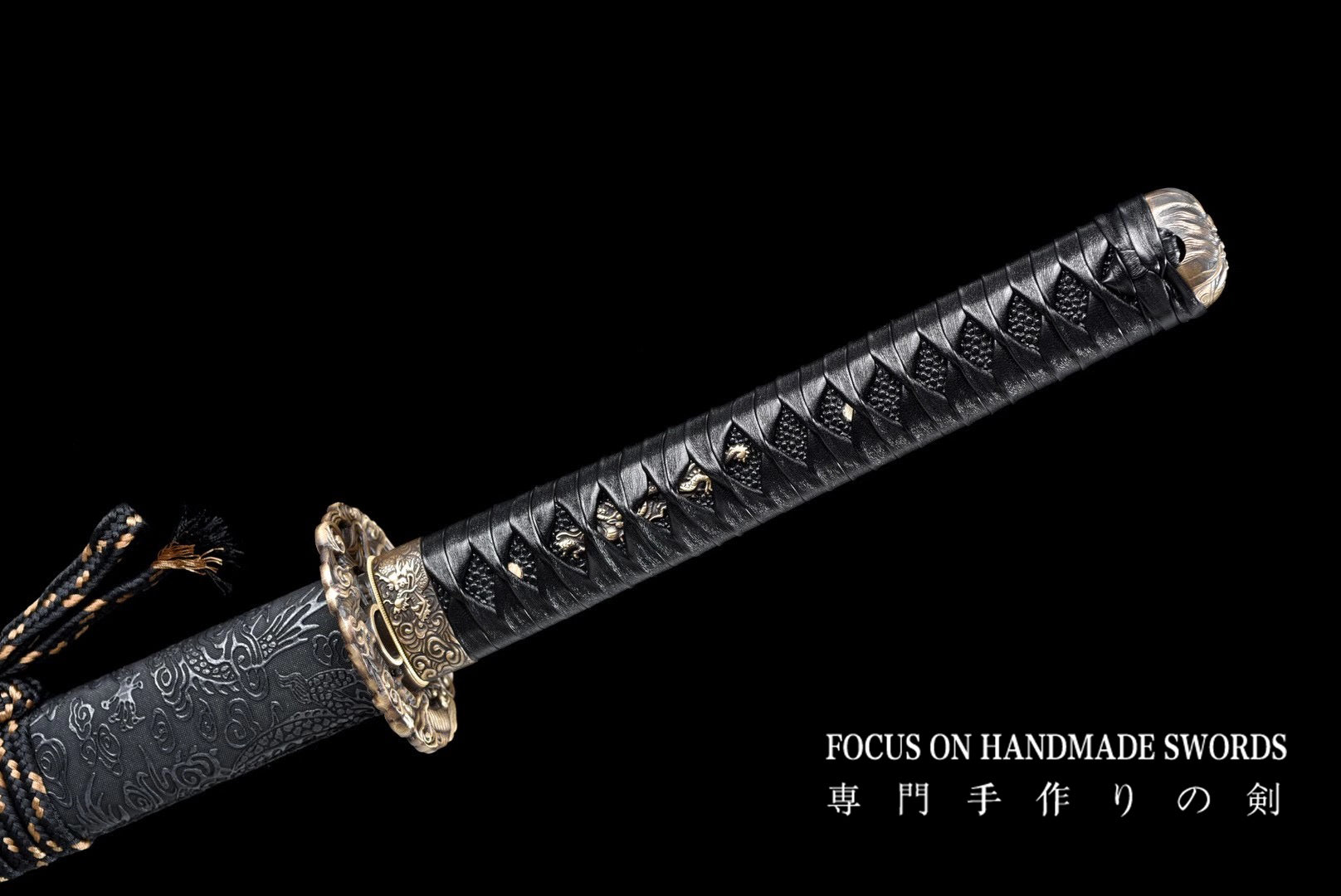 Hand Forged Katana Folded Steel Color Treated Japanese Samurai Leather Scabbard