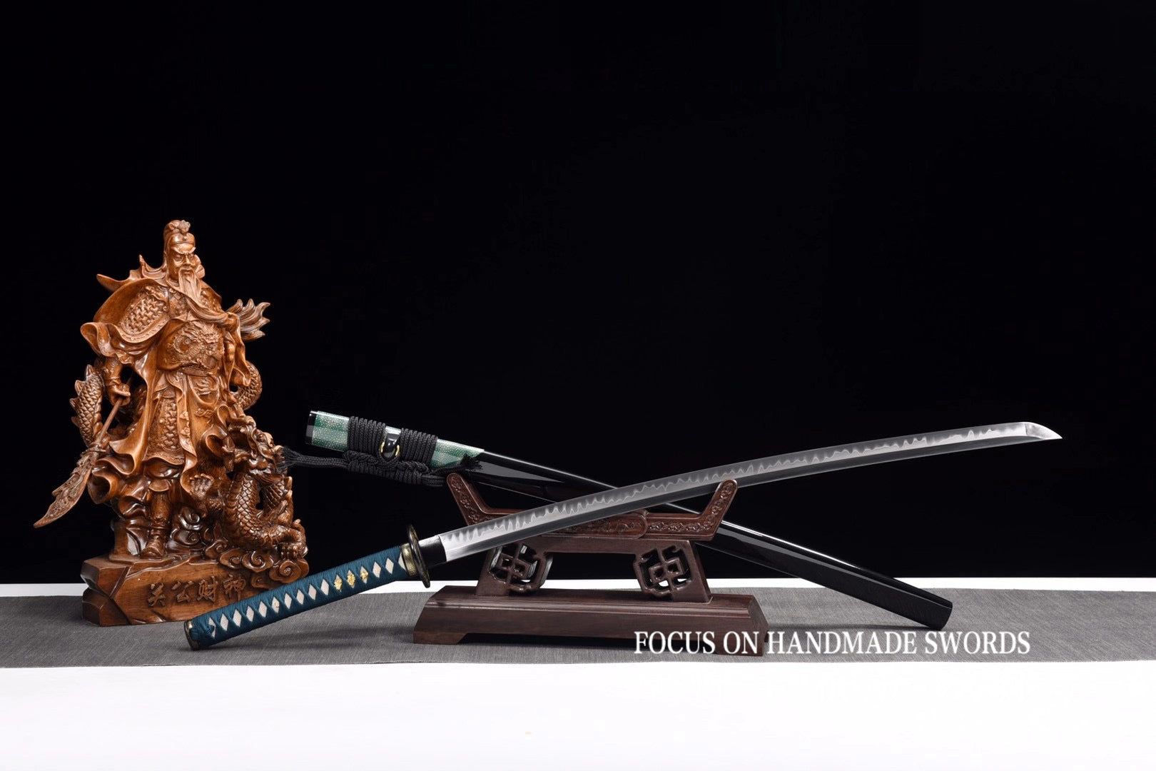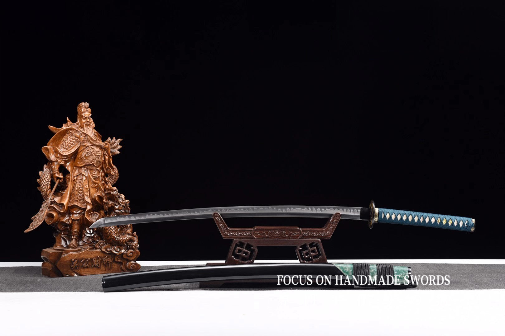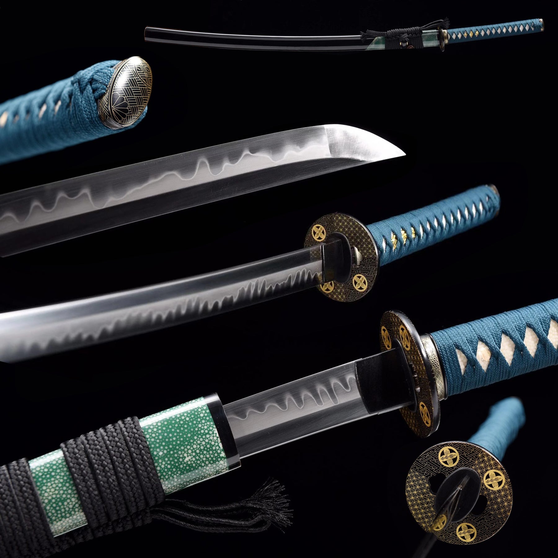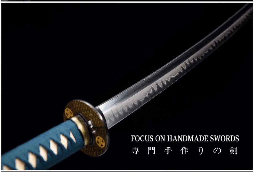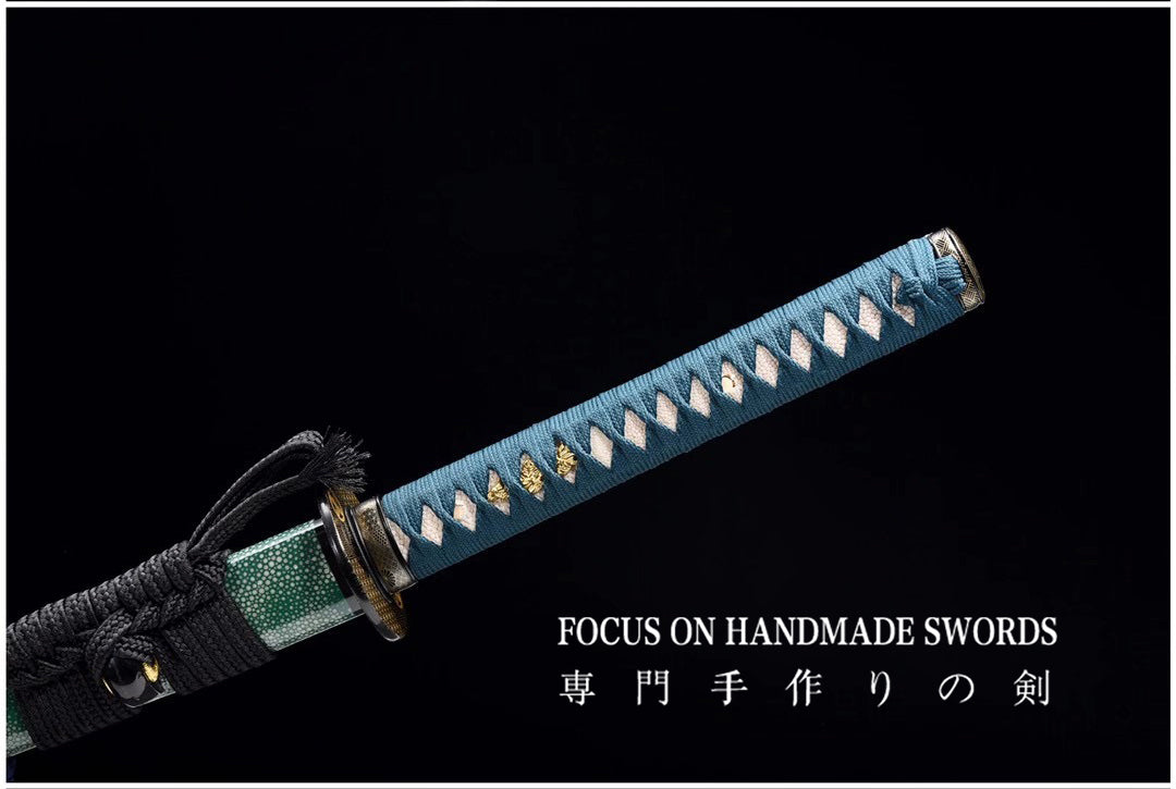 Handmade Katana High Carbon Steel With Clay Tempered Samurai Swords Green Saya/Scabbard