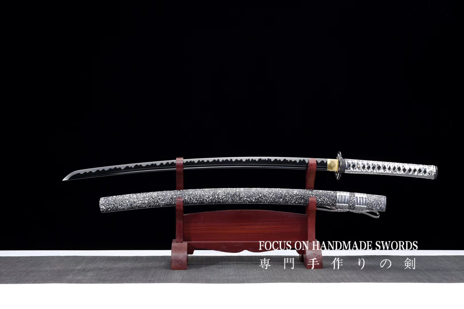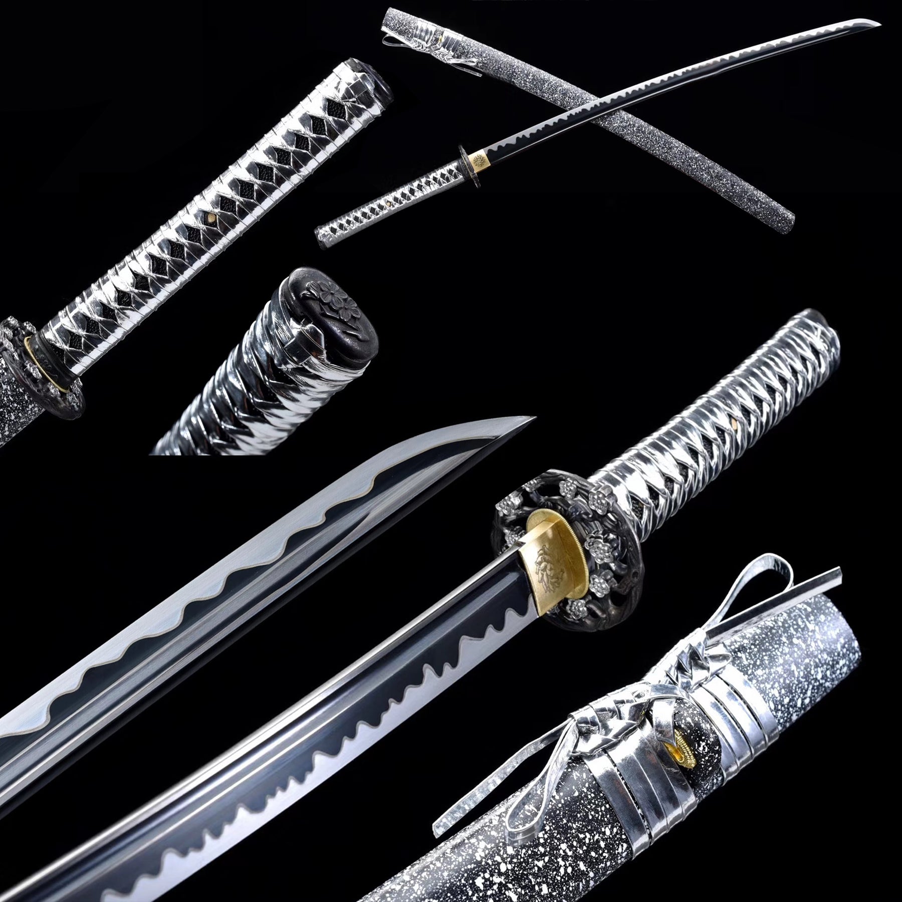 Hand Forged Manganese Steel Samurai Swords Katana Black Blade Hand Polishing Hamons