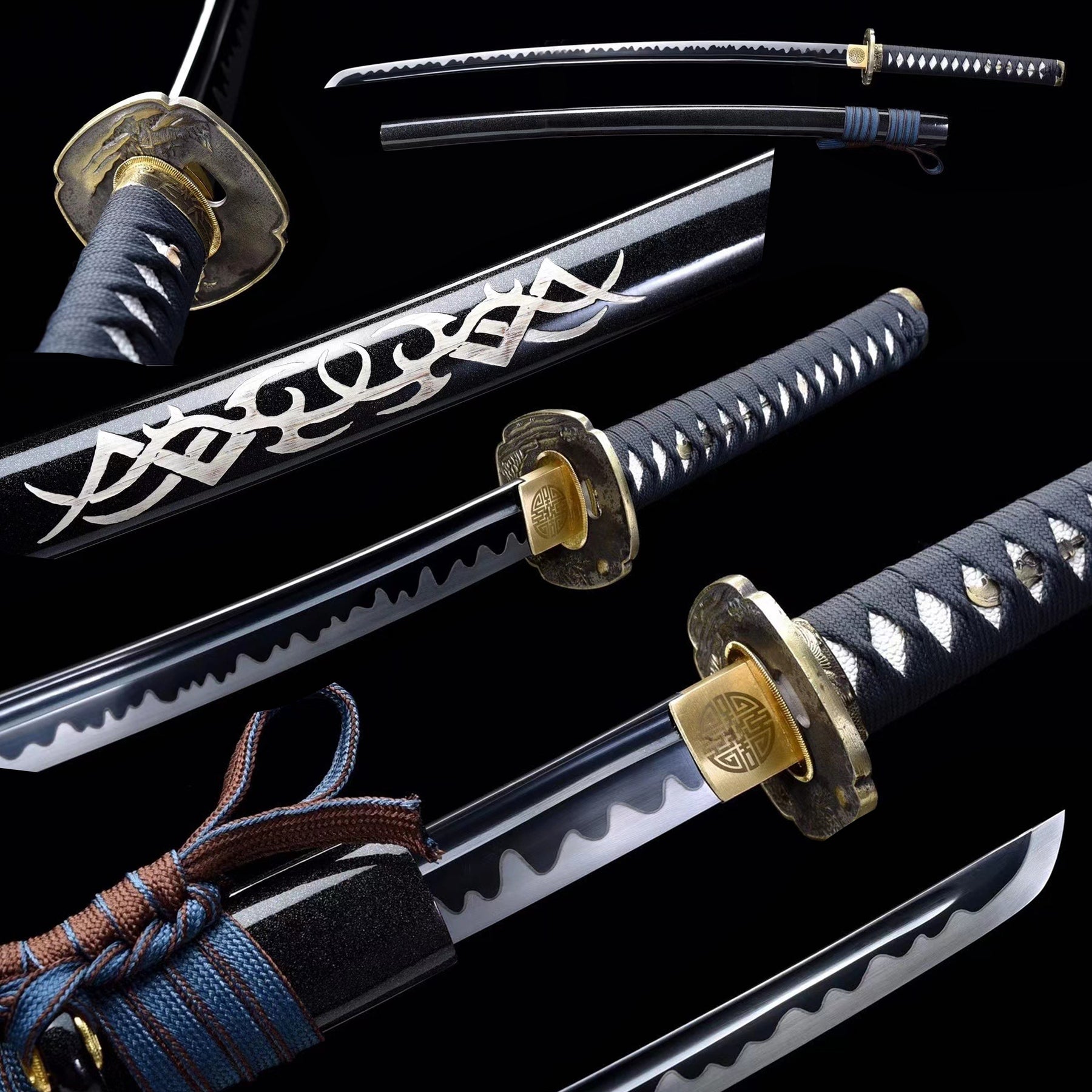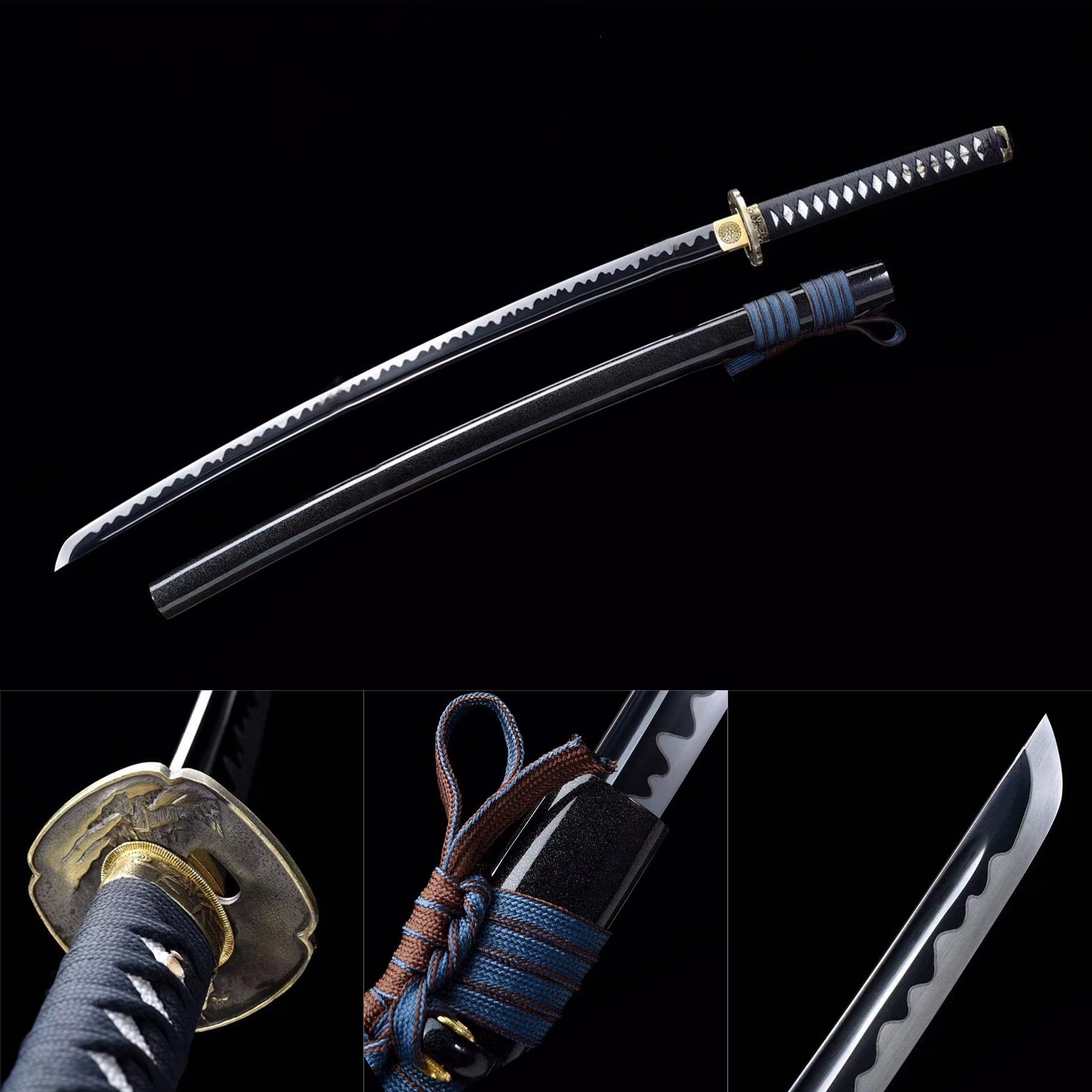 Handmade Samurai Swords Manganese Steel Color Treated Black Full Tang Blade Katana