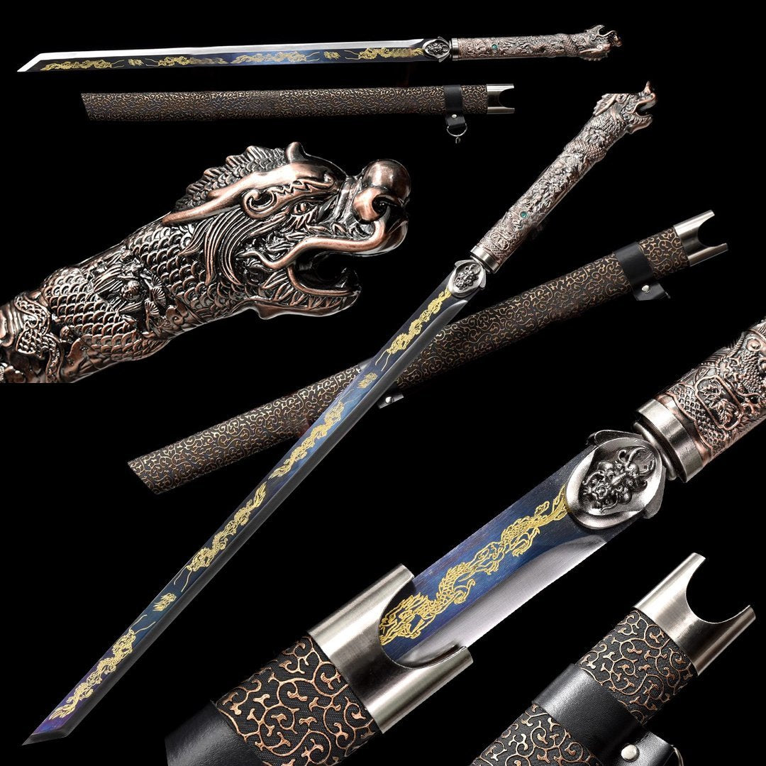 Handmade Ninjato,Gragon Handle Ninjato Sword Straight Blade No Guard