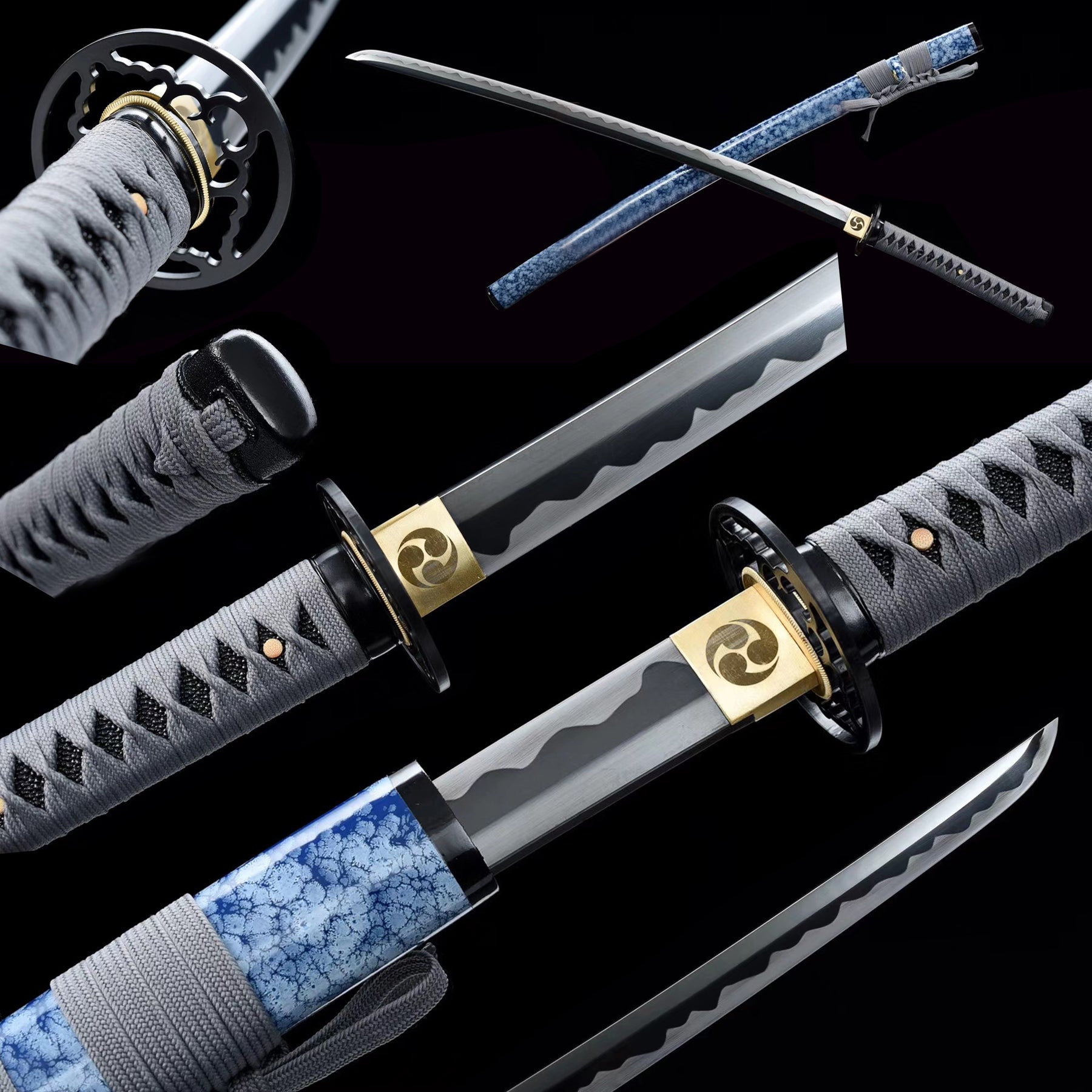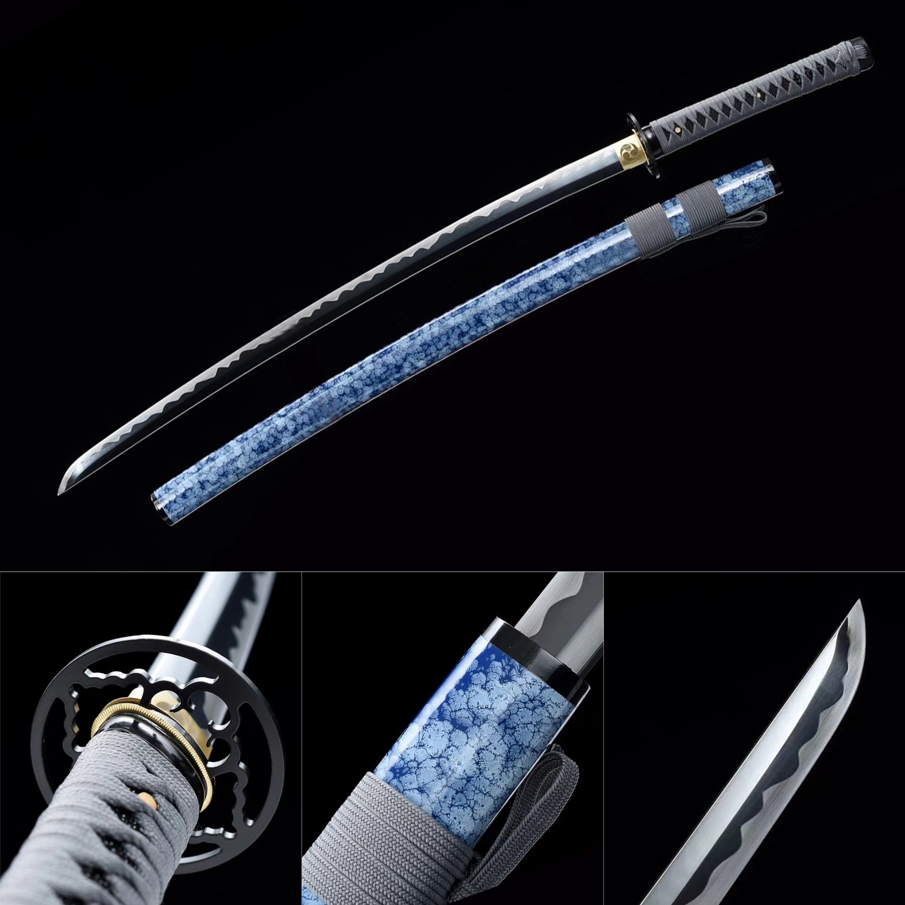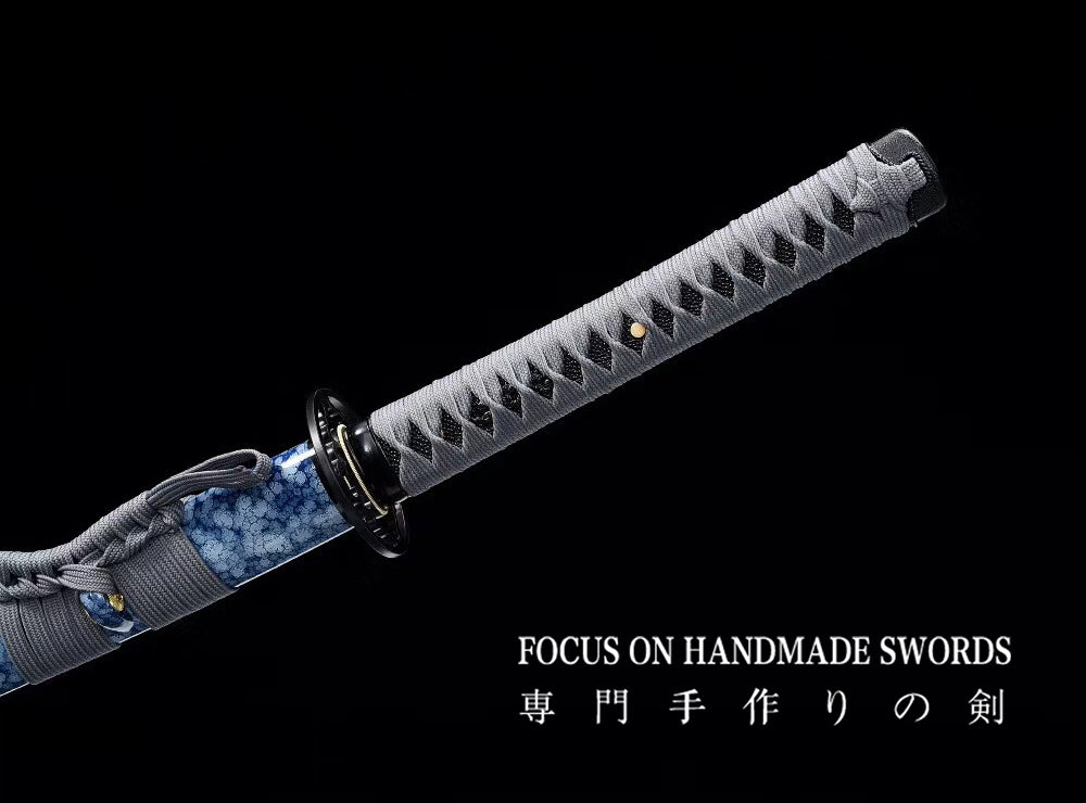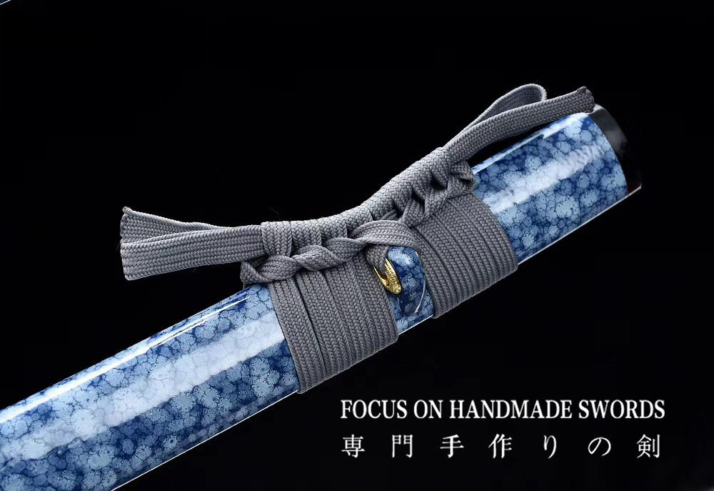 Hand Forged Manganese Steel Japanese Samurai Swords Iron Tsuba Katana Blue Saya/Scabbard