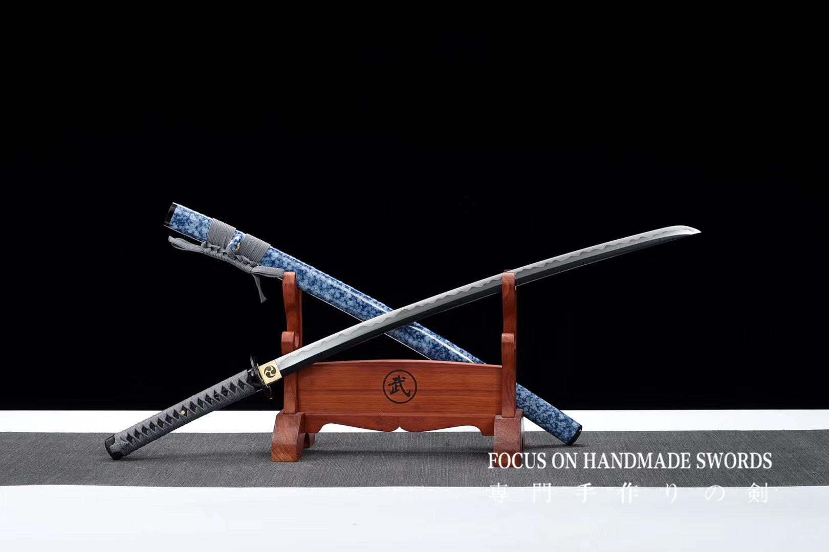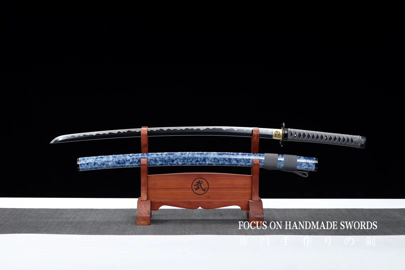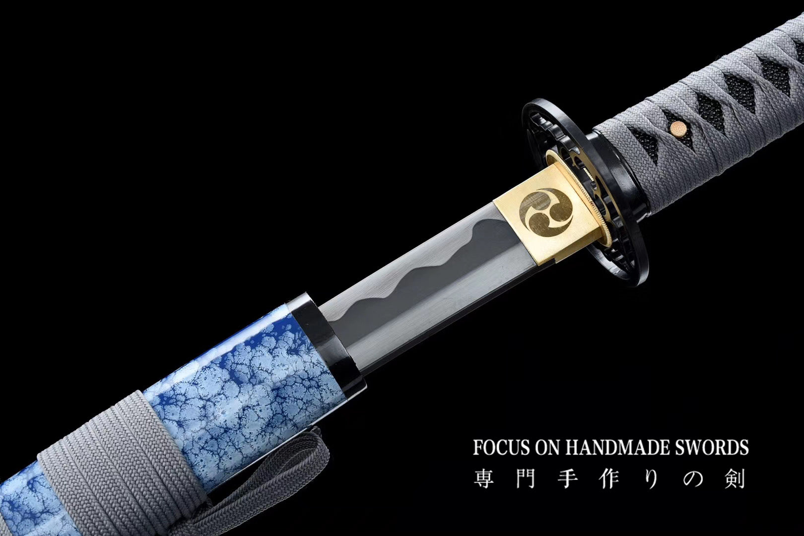 Hand Forged Manganese Steel Japanese Samurai Swords Iron Tsuba Katana Blue Saya/Scabbard