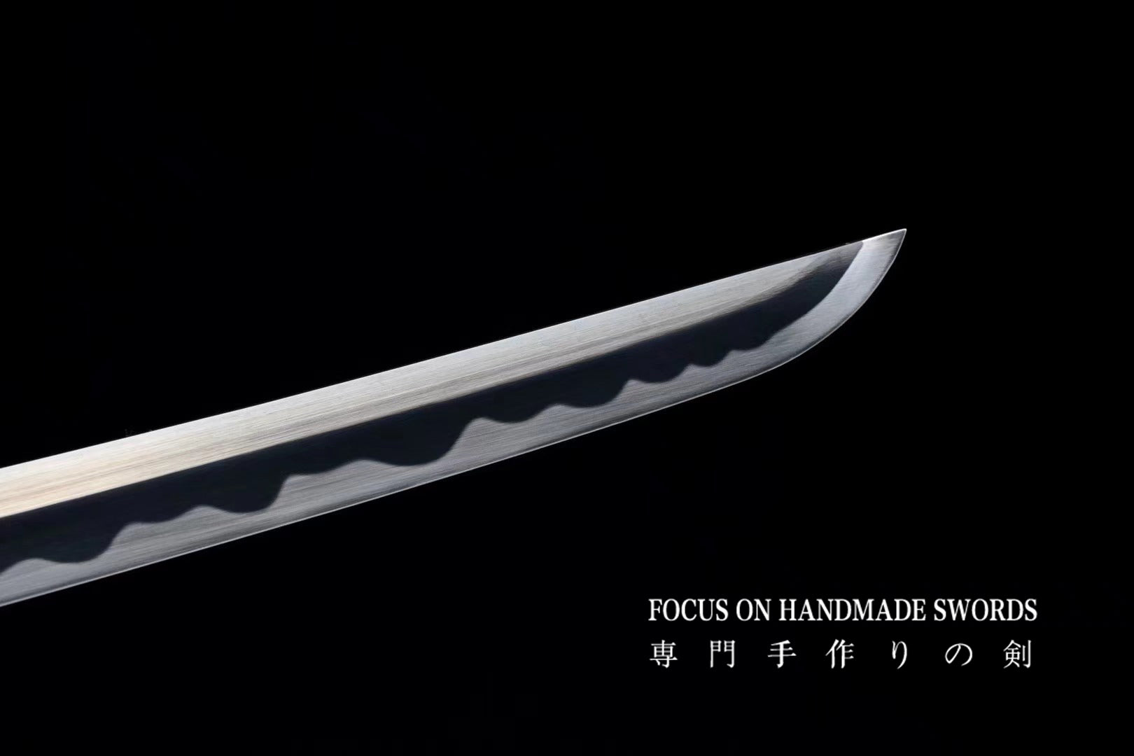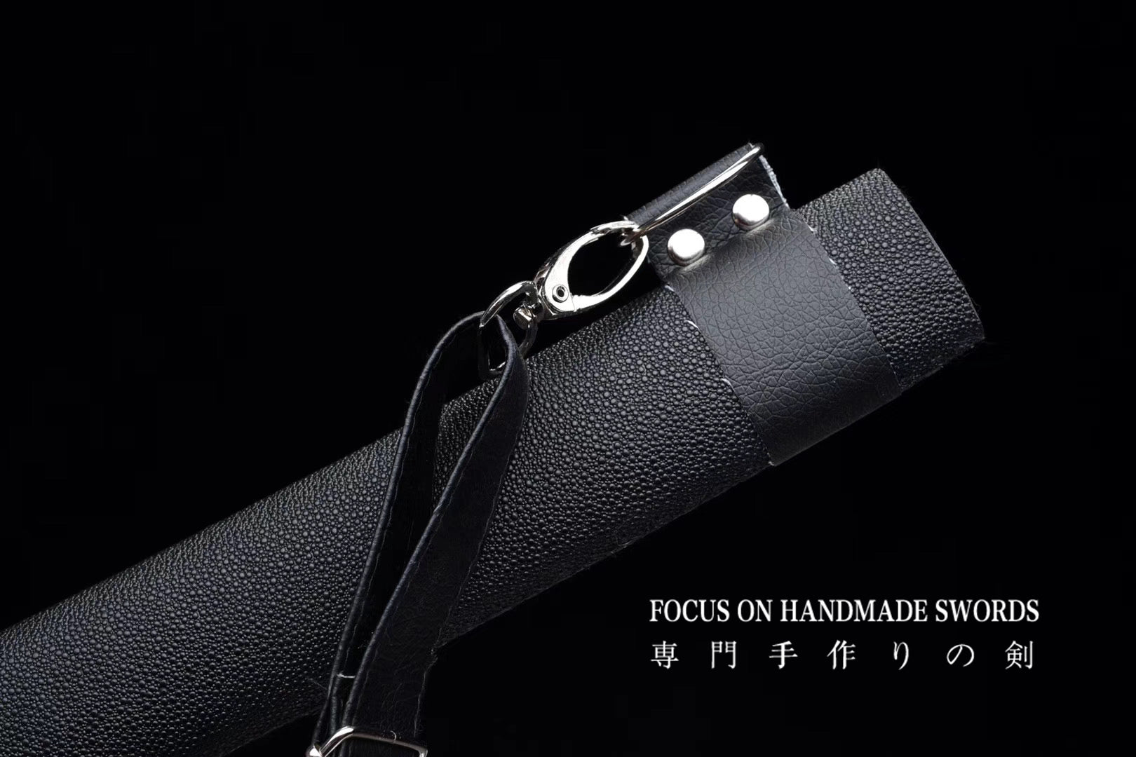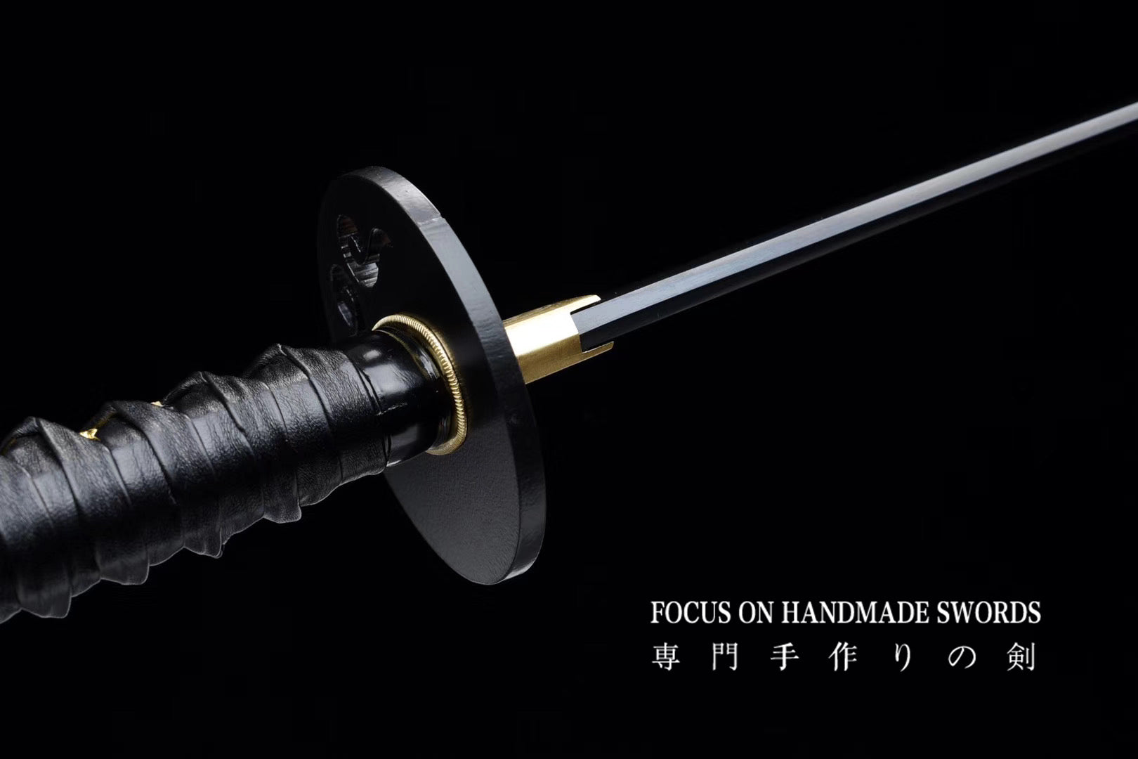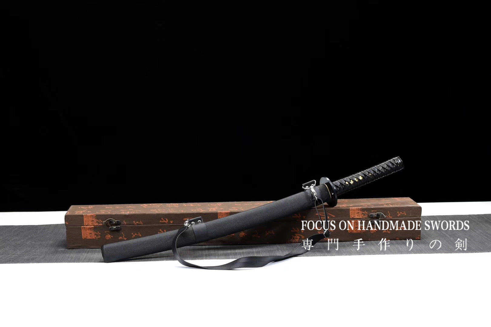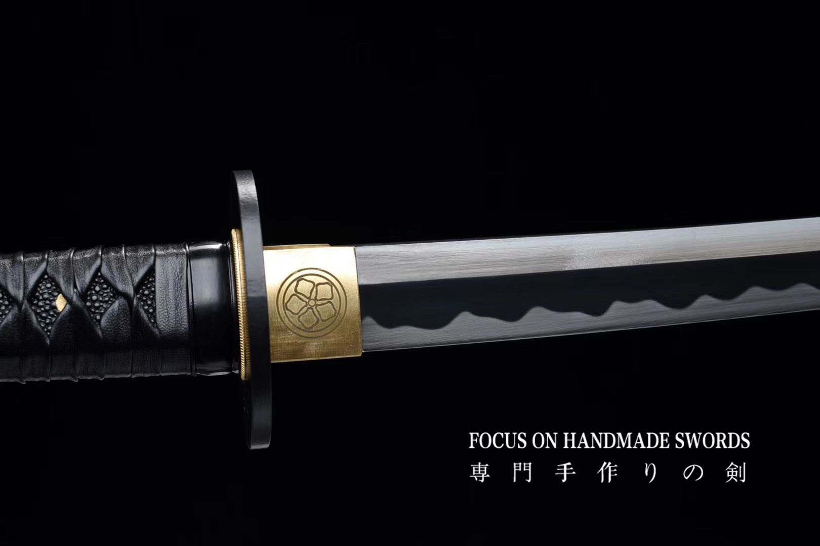 Handmade Katana Manganese Steel Color Treated Black Blade Samurai Swords Wakizshi Leather