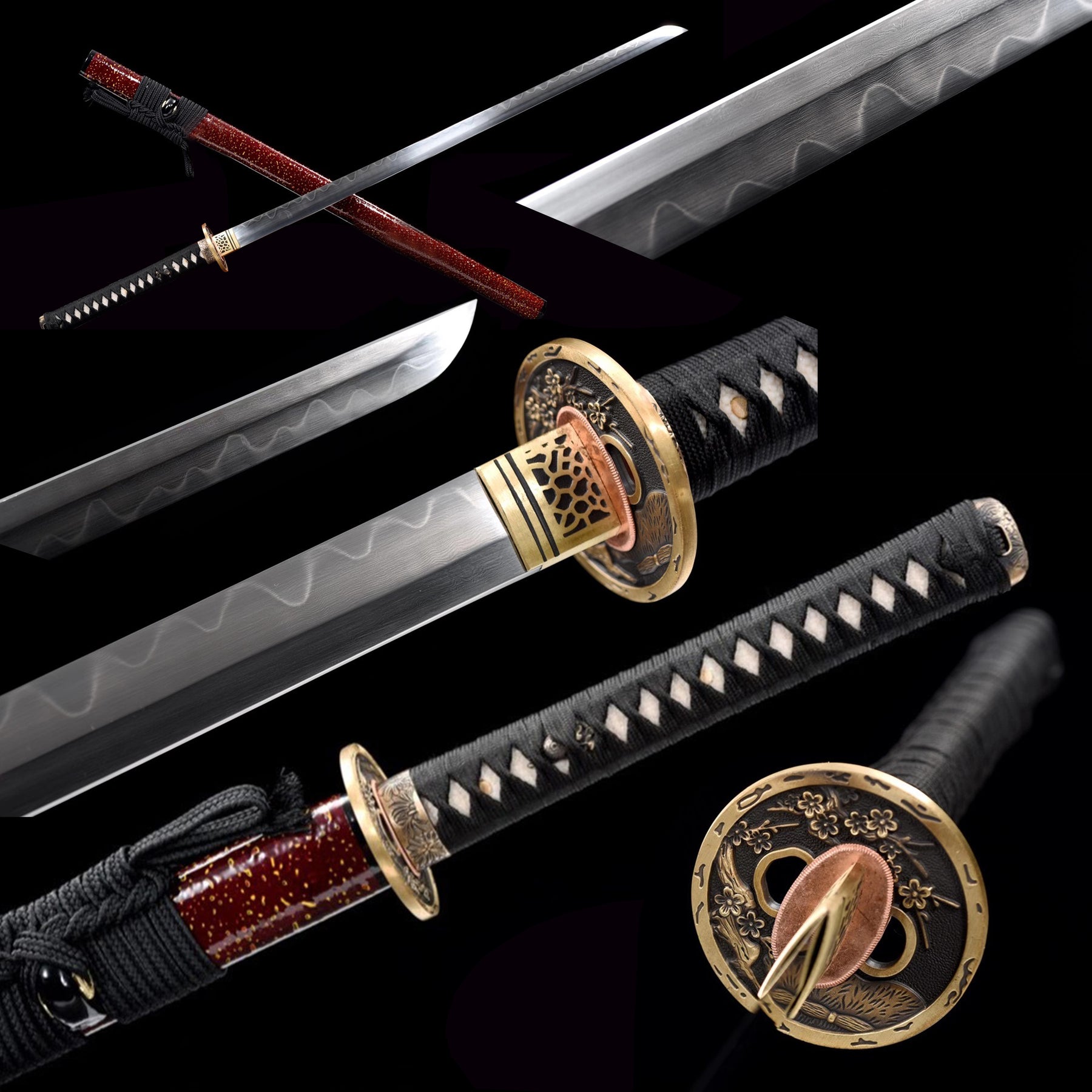 Hand Forged Folded Steel Clay Tempered Ninjato Ninja Brass Katana Samurai Sword