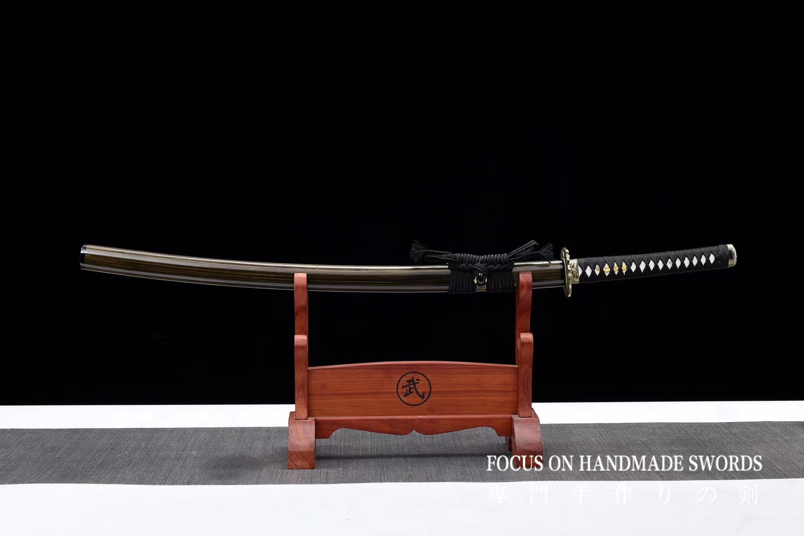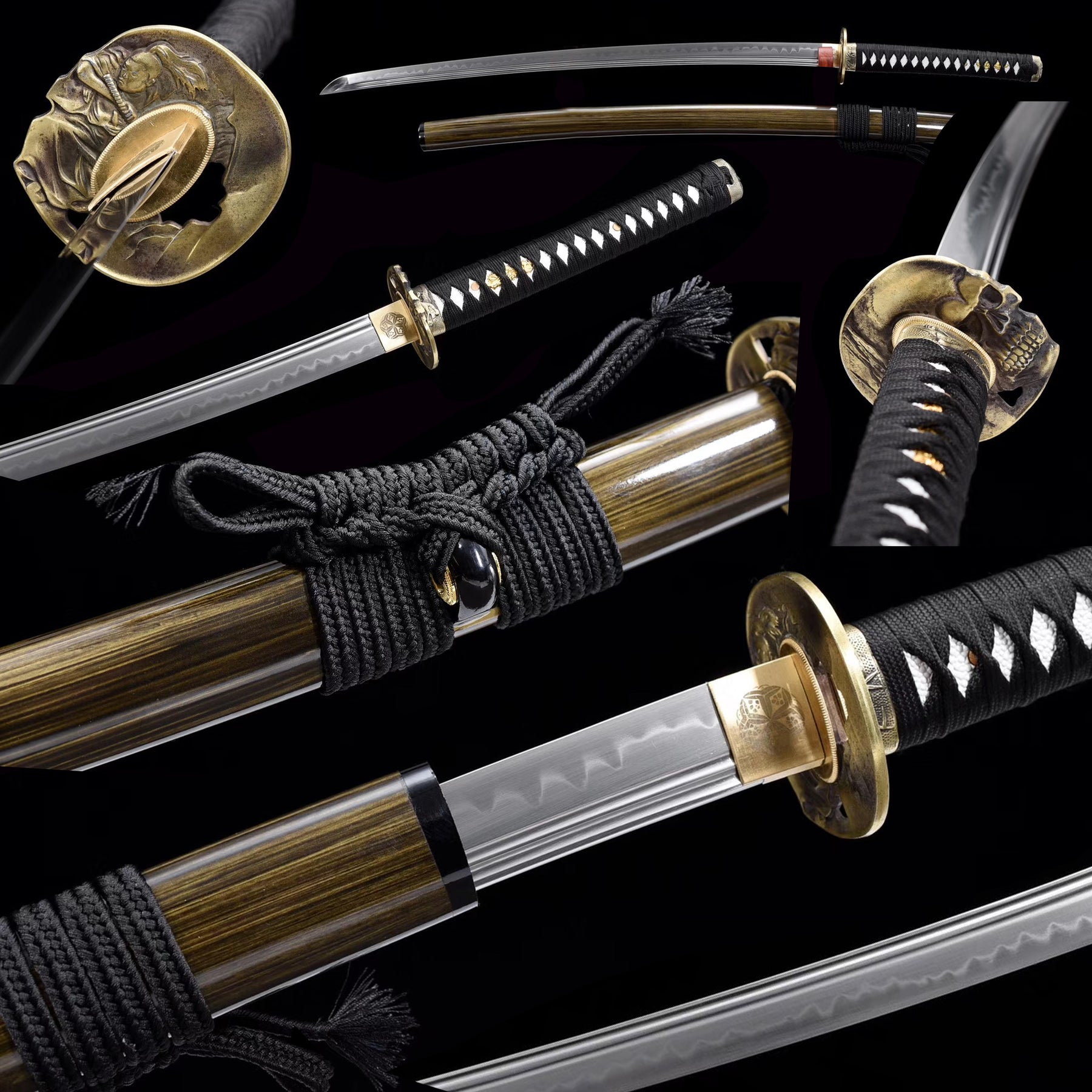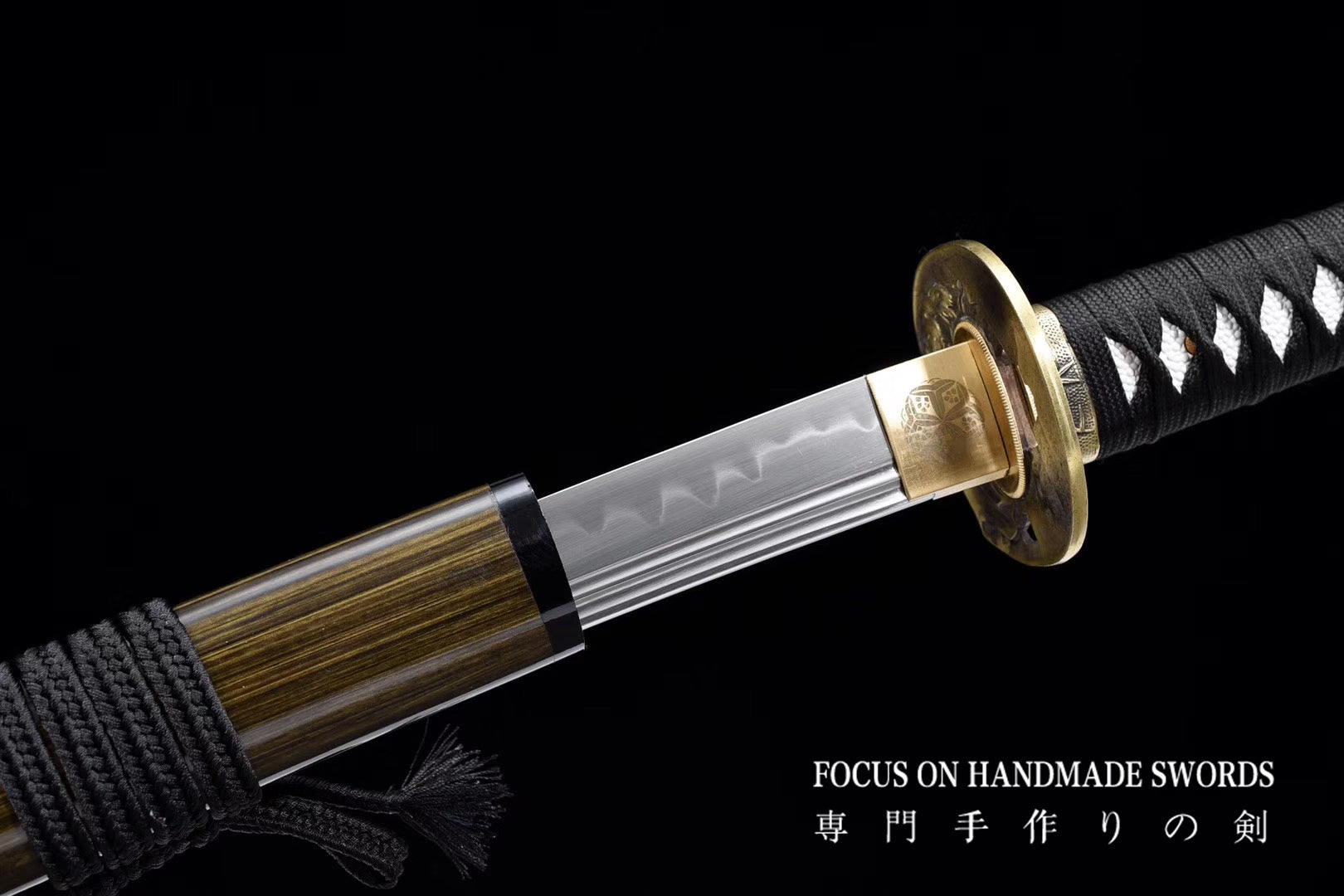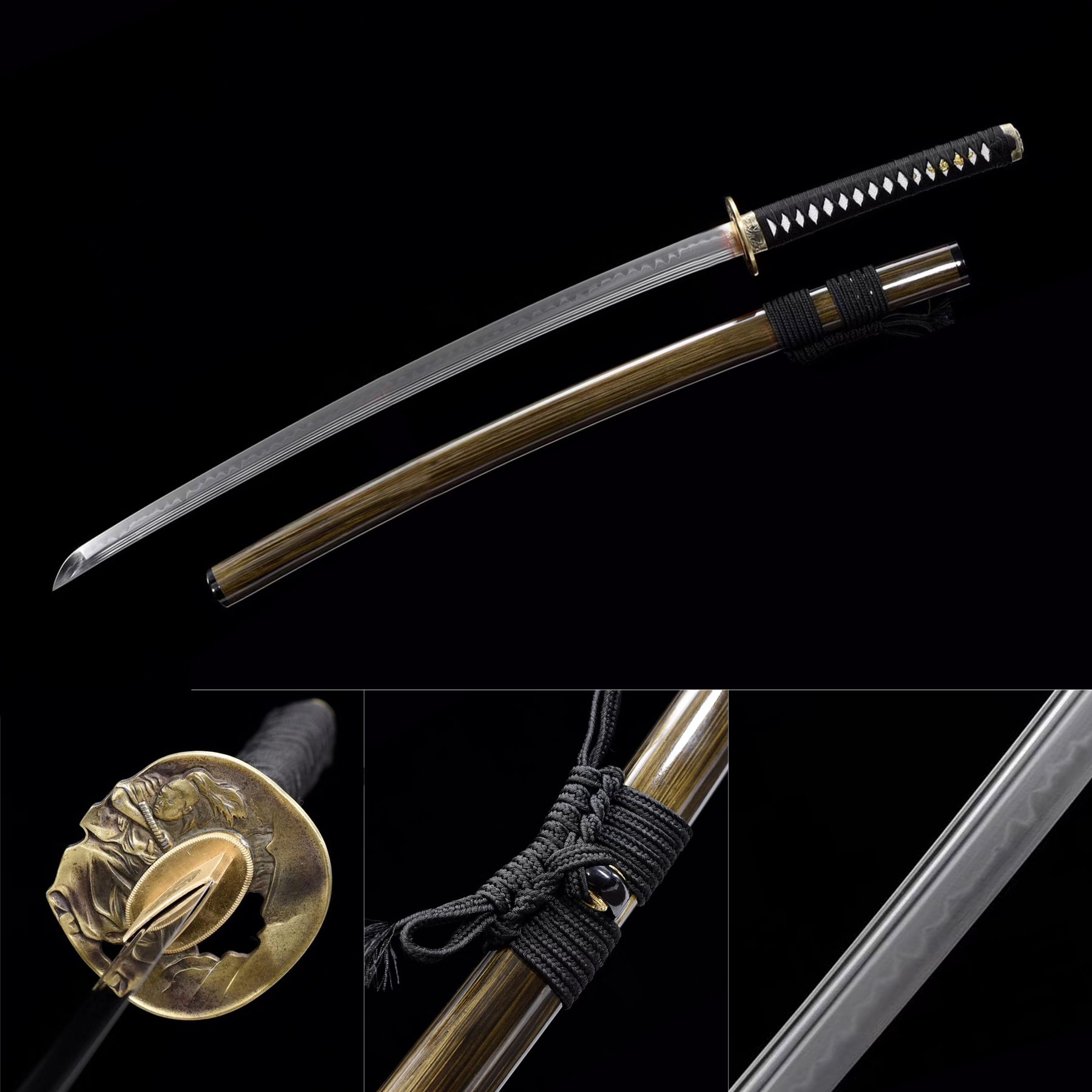 1095 High Carbon Steel Clay Tempered Japanese Swords Katana Samurai Wood Stripes Saya