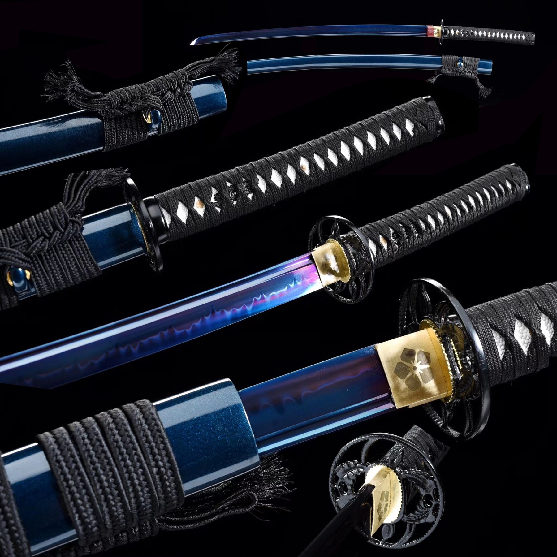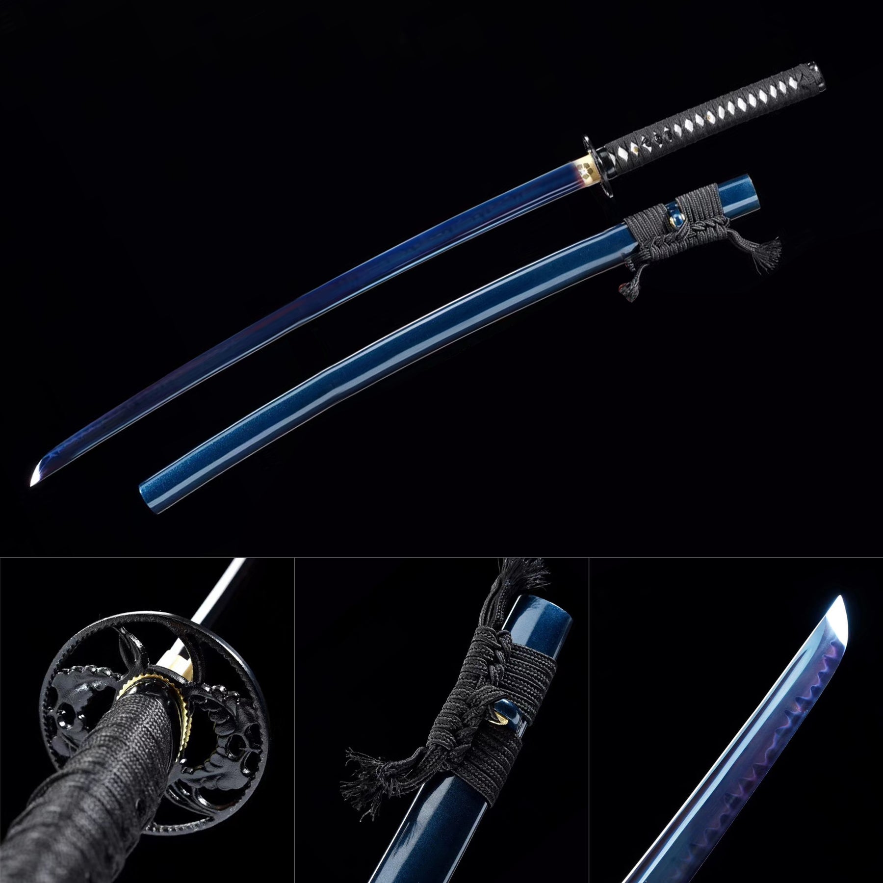 41" Hand Forged Katana Clay Tempered Color Treated Blue Japanese Samurai Swords
