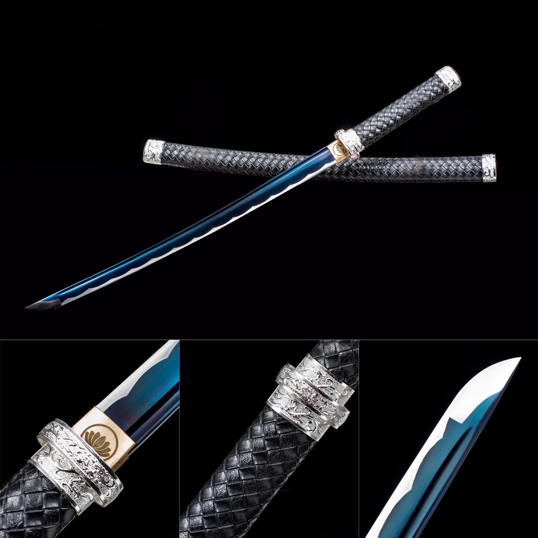Hand Forged 1065 High Carbon Steel Japanese Samurai Wakizashi Swords Katana Leather Scabbard
