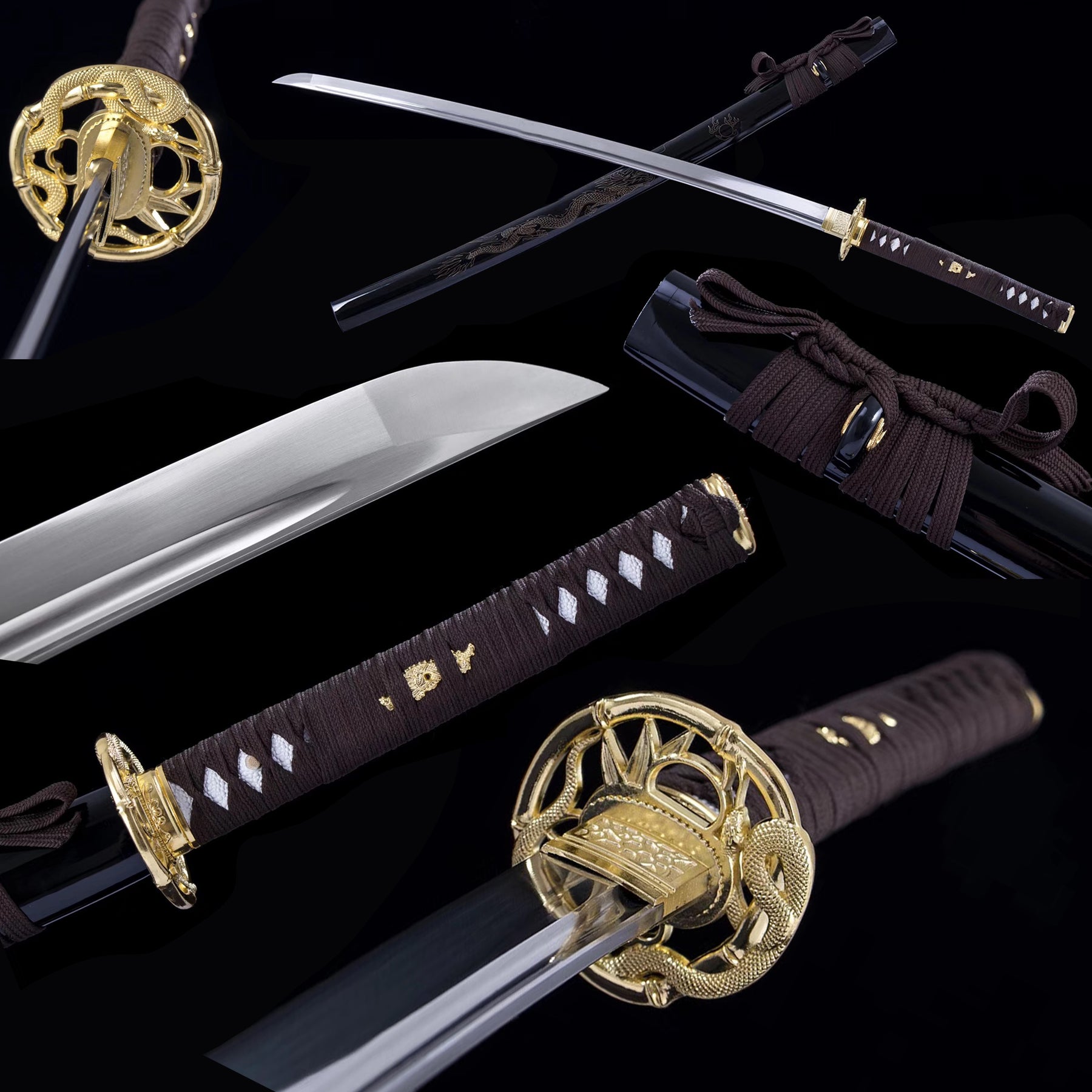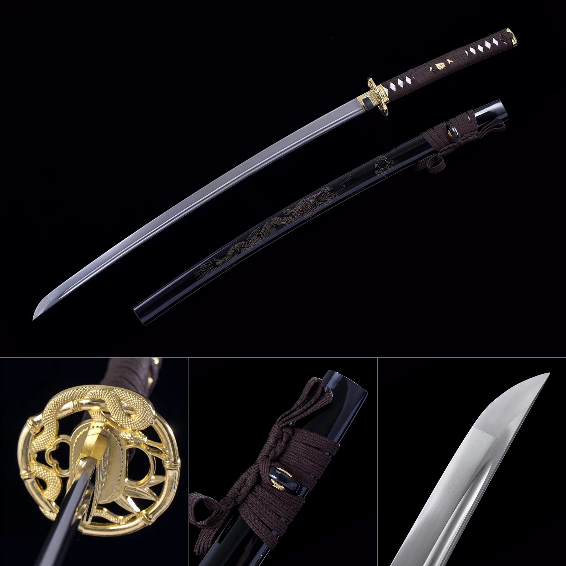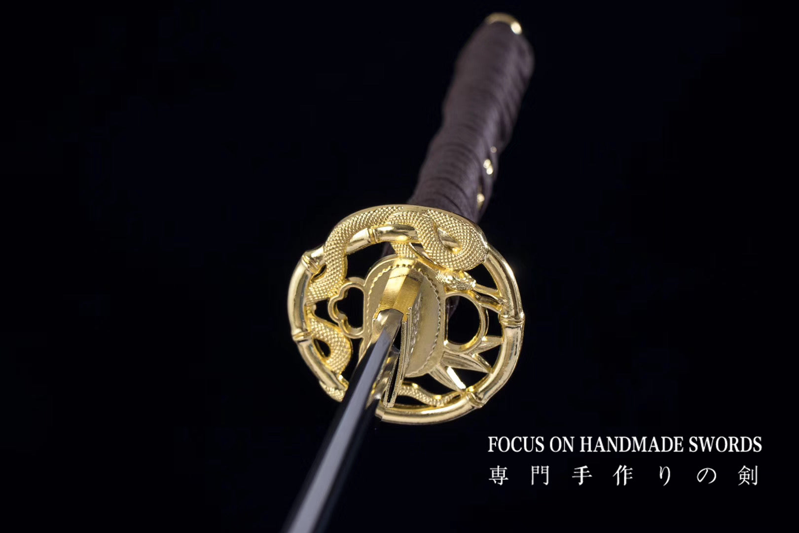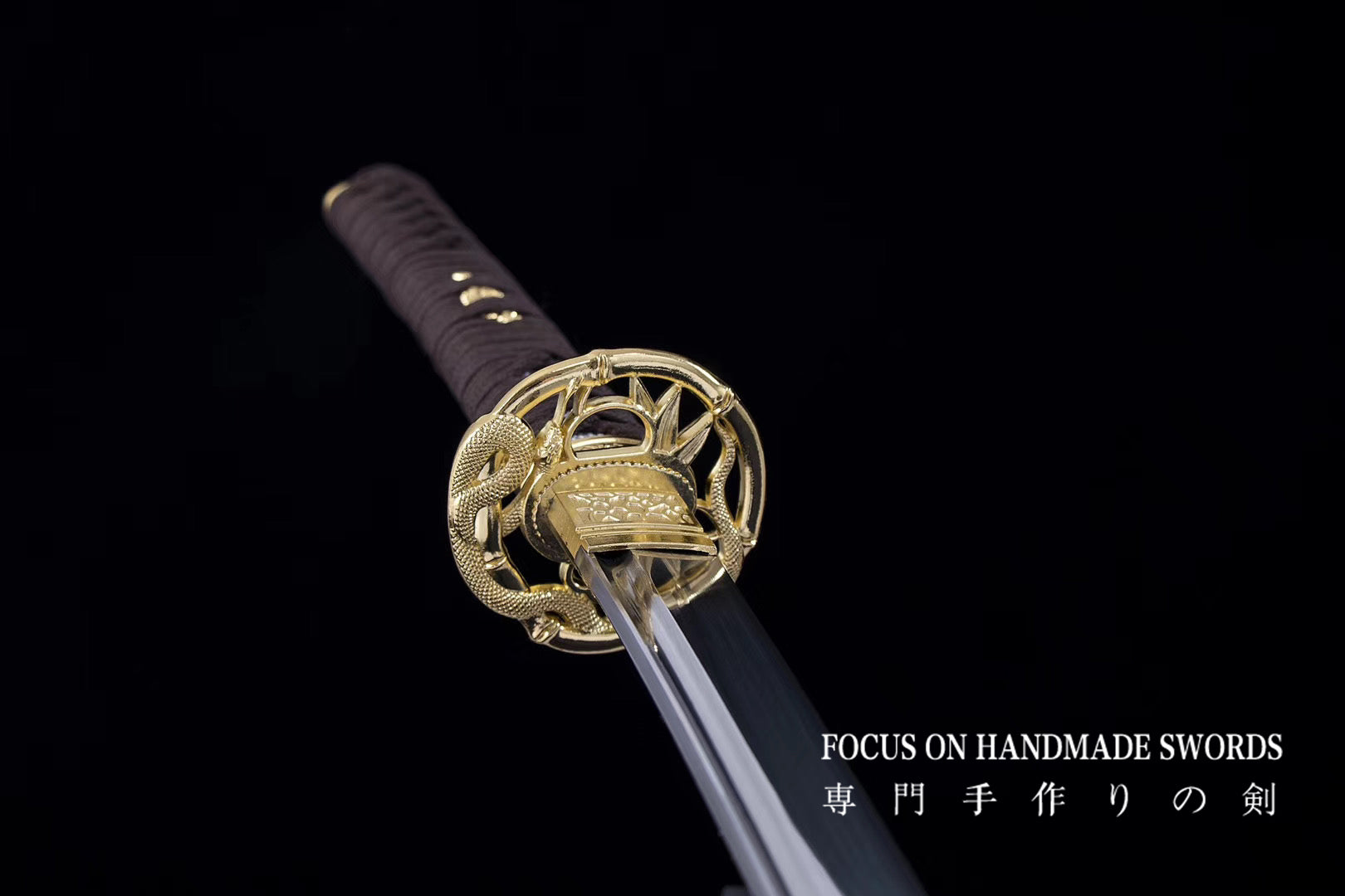 Hand Forged 1065 High Carbon Steel Katana Sword Golden Snake Tsuba Japanese