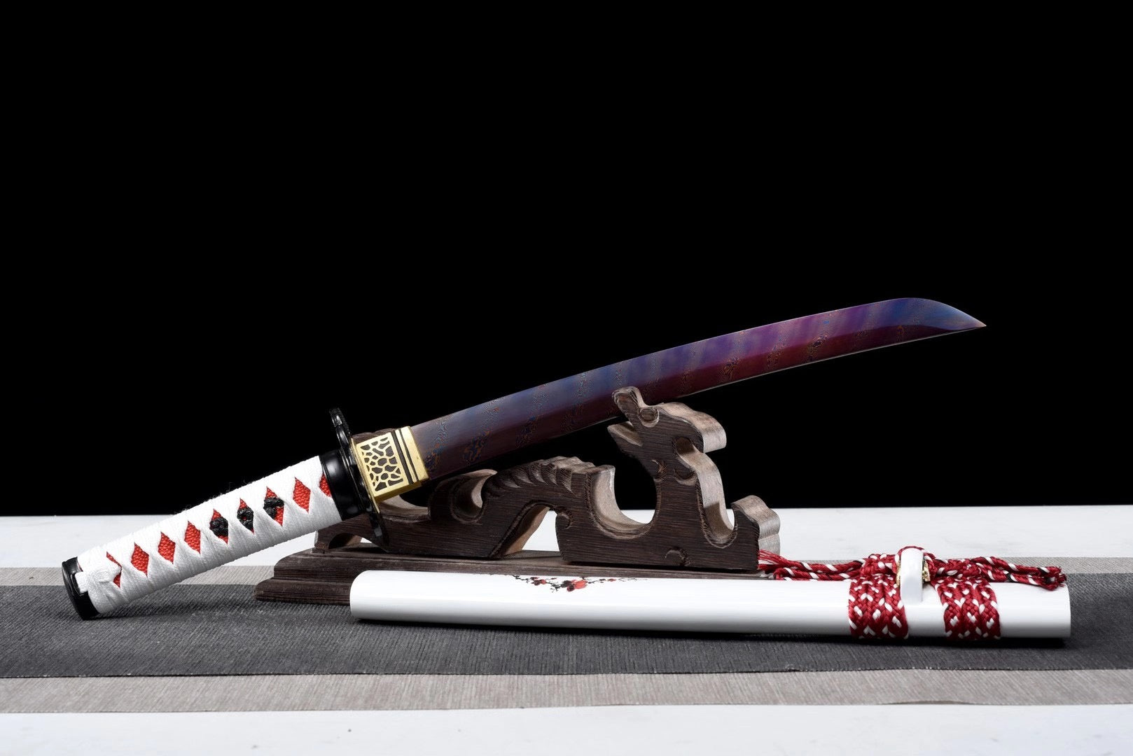 Hand Forged Folded Steel Color Treated Tanto White Saya Japanese Sword Samurai