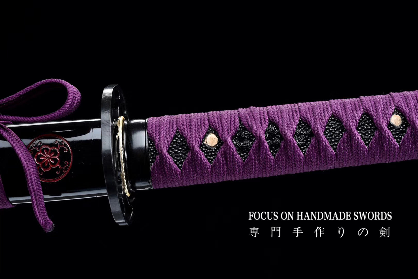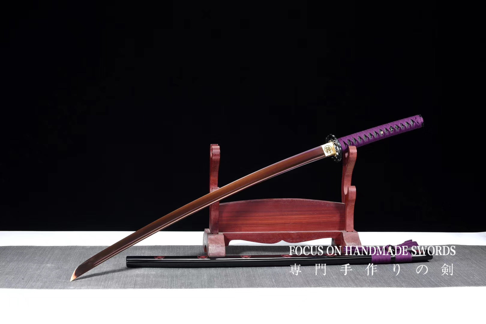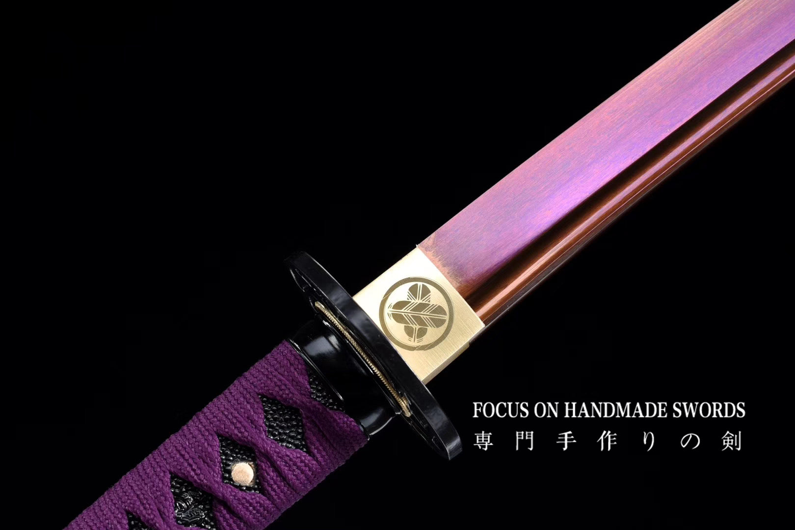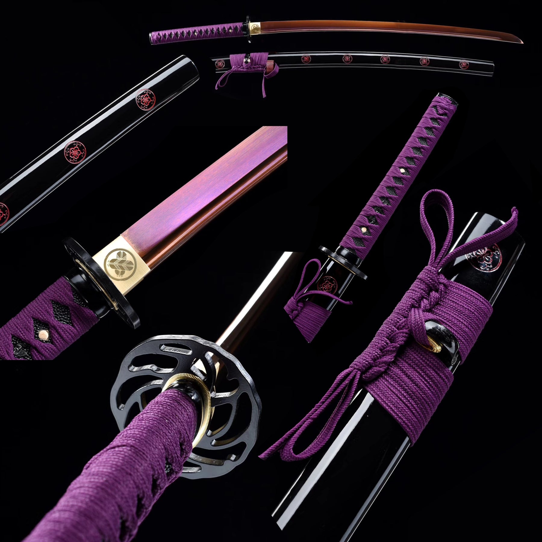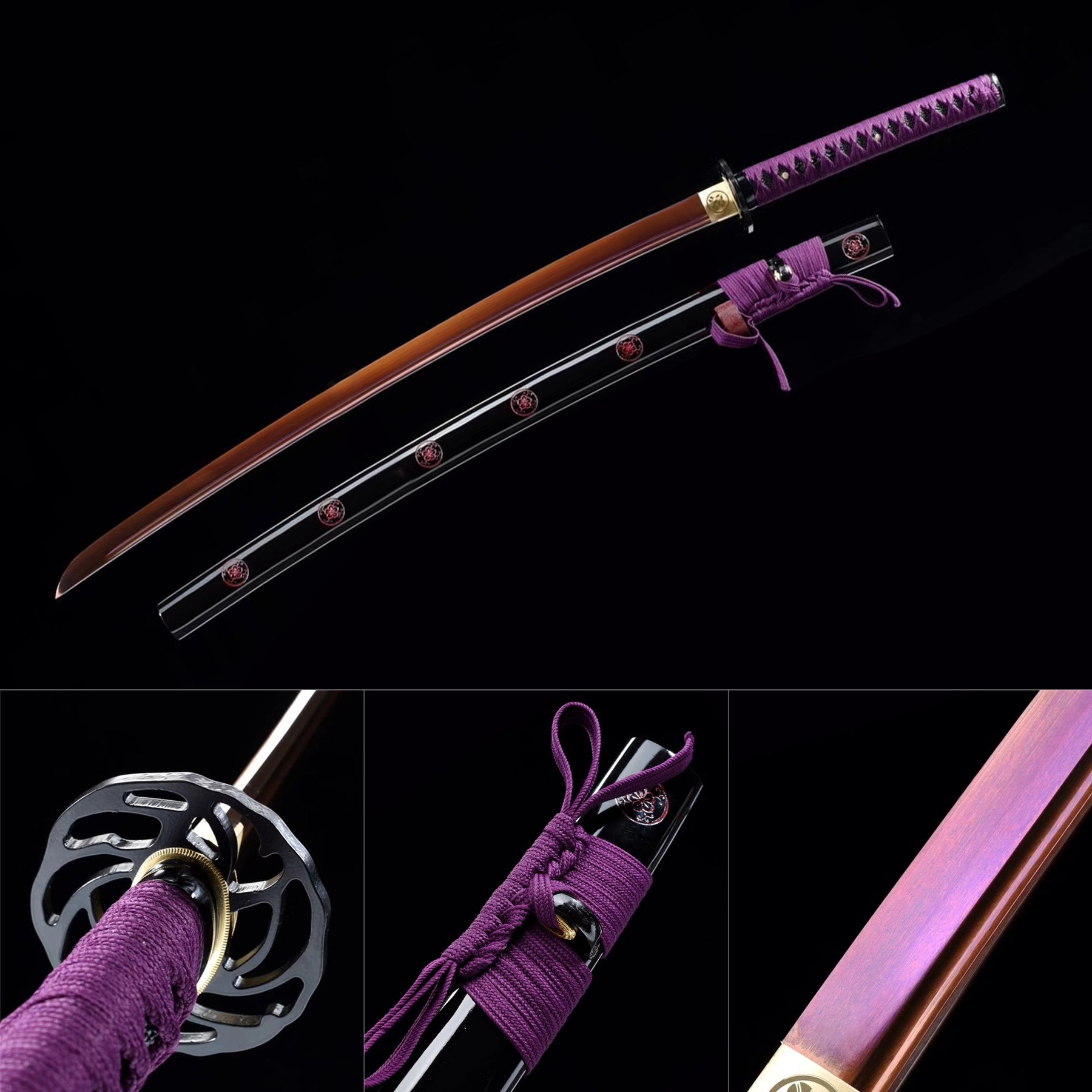 Hand Forged Katana Manganese Steel Full Tang Red Color Treated Samurai Swords Iron Tsuba Purple