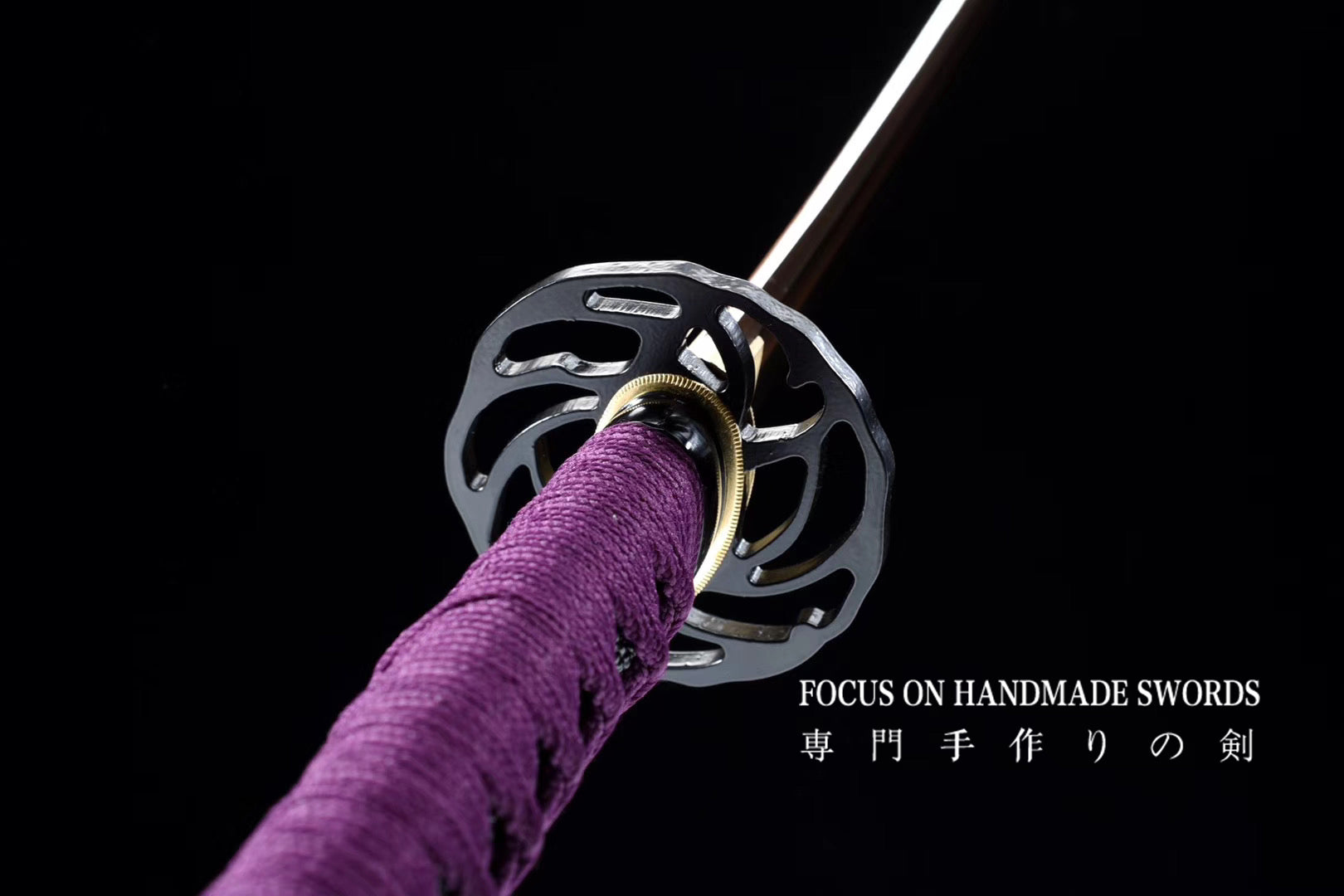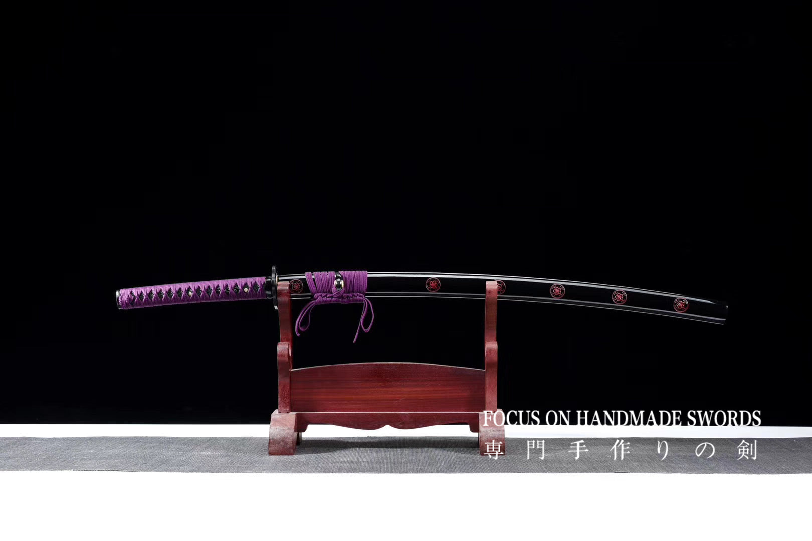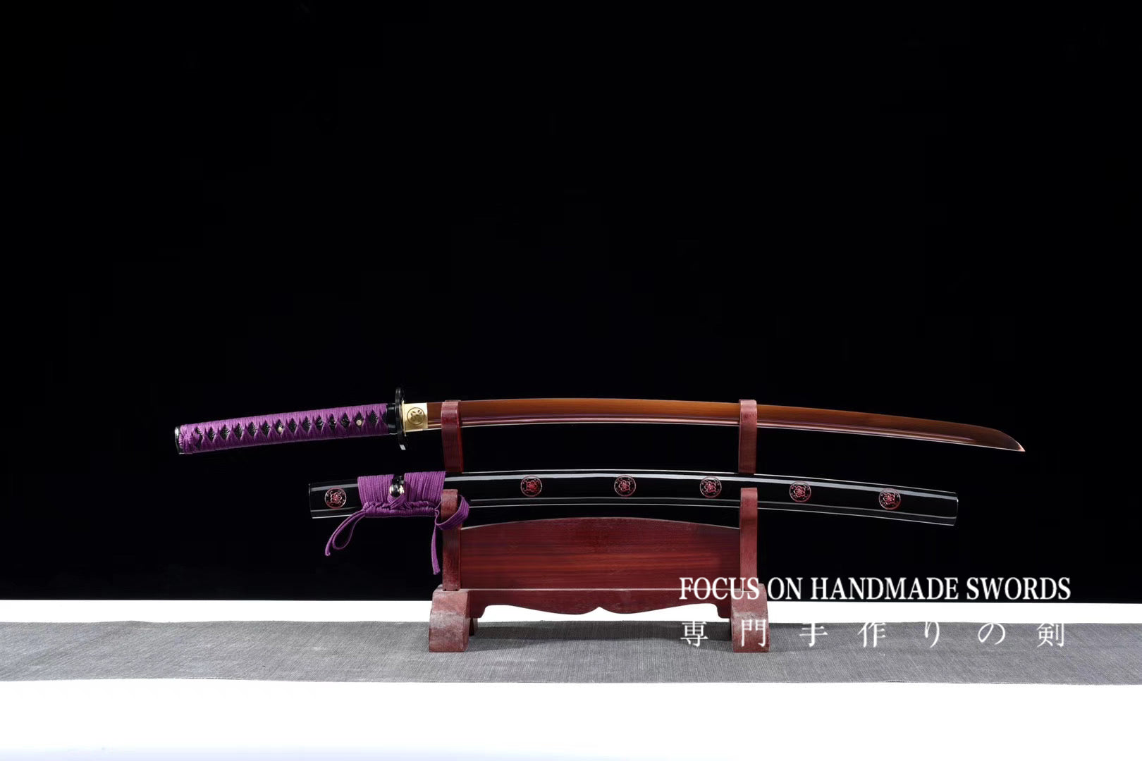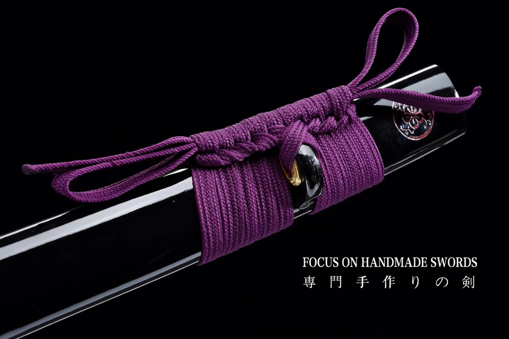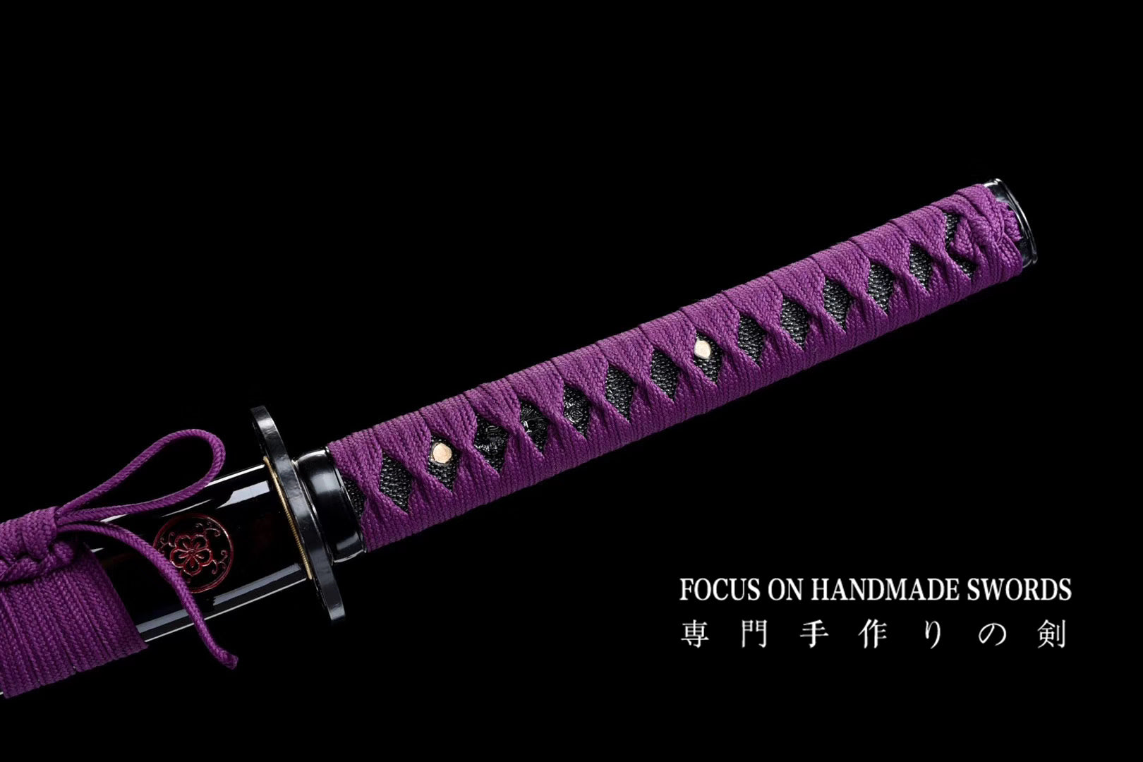 Hand Forged Katana Manganese Steel Full Tang Red Color Treated Samurai Swords Iron Tsuba Purple
