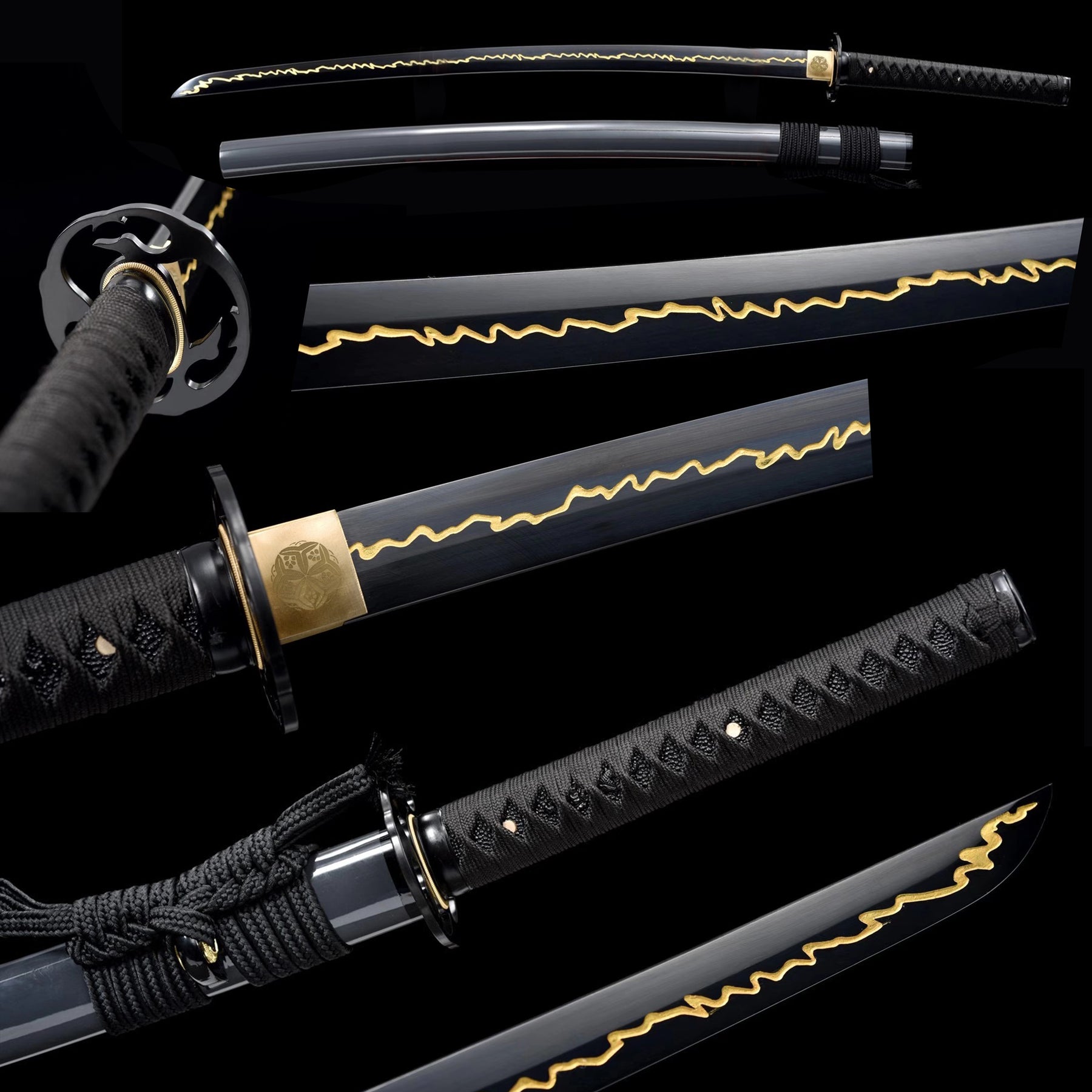 Handmade Manganese Steel Katana Swords Lightning Hamon Black Japanese Samurai